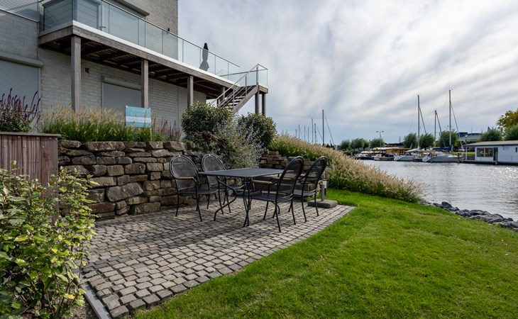 From the living room you have access to the renovated and spacious sun terrace with comfortable patio furniture and a panoramic view over the Veerse Meer. Here you can enjoy the beautiful sunset until the late hours. From the balcony, the spiral staircase on the outside of the house gives you access to the beautiful garden with its own jetty (1.80 meters wide, maximum boat length 9 meters). Because the house is located directly on the water, we recommend that you bring a life jacket for children.