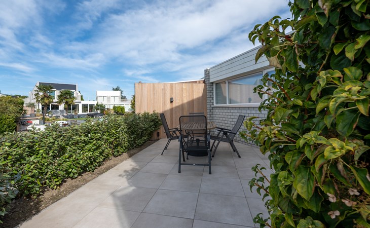 Het terras is prachtig met een open zicht naar het Veerse meer.