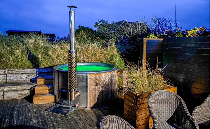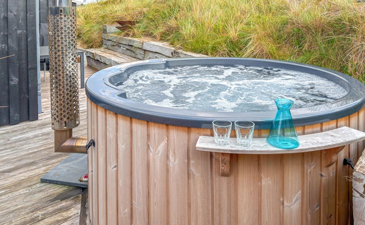 Nestled in the dune landscape of Hvorup Klit, near Løkken, this cosy holiday home offers the ideal retreat for a relaxing holiday with the whole family. The bright, modern kitchen is spacious and not only invites you to cook, but also offers a beautiful view of the surrounding nature. The living area is also characterised by large windows that let in plenty of natural light and create a warm, inviting atmosphere. Relax in the sauna and whirlpool in the evening or make yourself comfortable in the cosy sofa area and spend sociable evenings playing board games by the crackling wood-burning stove.