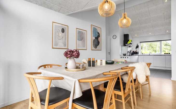 Welcome to this bright and tastefully furnished holiday home in a charming location close to beautiful forests and long sandy beaches. The modern and high-quality interior offers plenty of space and is also ideal for a holiday with two families. Look forward to harmonious meals in a bright and stylish atmosphere, organise cosy games evenings or enjoy a good film on the spacious sofa area.