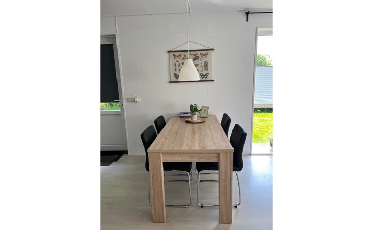 The bungalow offers the ultimate comfort you would expect, with a spacious living room and an open kitchen. The kitchen is equipped with a microwave, refrigerator, 4-burner induction hob, dishwasher, coffee (filter) and Senseo machine and a kettle. The interior is very complete, including a spacious 4-person sofa, dining area, large TV screen and numerous accessories that ensure a pleasant stay. Of course, there is free wifi and parking next to the bungalow for your car. On the sunny terrace you will find a table with 4 chairs, two windbreaks and a parasol.