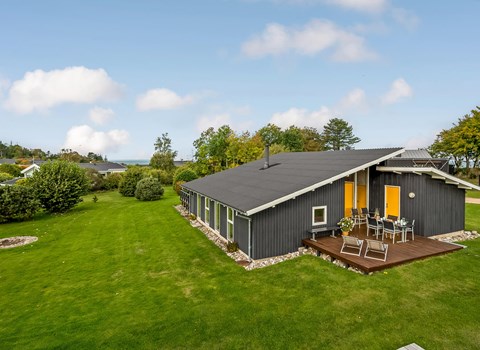 The classic-style interior with wood-paneled walls and plenty of space for joint activities creates a cozy feel-good atmosphere in the bright rooms of this house. Enjoy meals together with a view of the garden through large panoramic windows and relax to the fullest with your loved ones. Nothing is nicer after a wonderful day at the beach than a sauna session. In the evening, make yourself comfortable on the inviting sofa, play games, watch a movie or chat late into the evening by the cozy crackling fireplace.