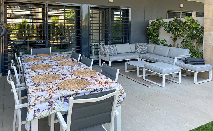 This exclusive and modern vacation apartment welcomes you on the first floor. Relax with your loved ones in this luxuriously furnished accommodation and enjoy the open concept of the large living space. The spacious terrace offers you a great opportunity to enjoy your meals in the open air or sunbathe on the high-quality garden furniture.