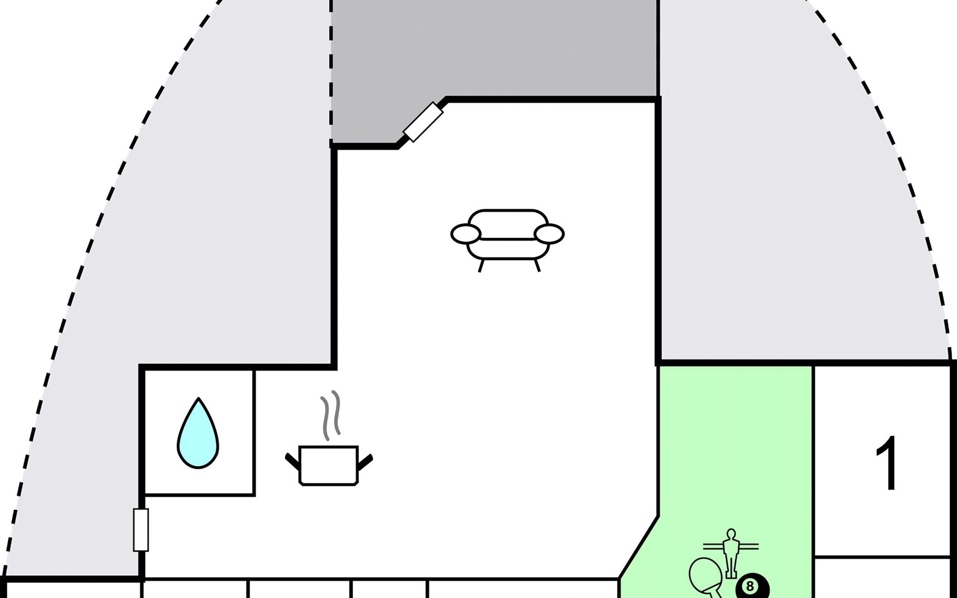 The cottage has a 30 m² activity room for children and adults with games such as billiards, table tennis and darts. In addition, 2 beautiful bathrooms; one is equipped with a 3-4 person whirlpool and sauna and here you can spend nice wellness hours. The exclusive living room is tastefully furnished and has a fireplace. From here there is an exit to the beautiful terrace, from where you can enjoy the sun from morning to evening.