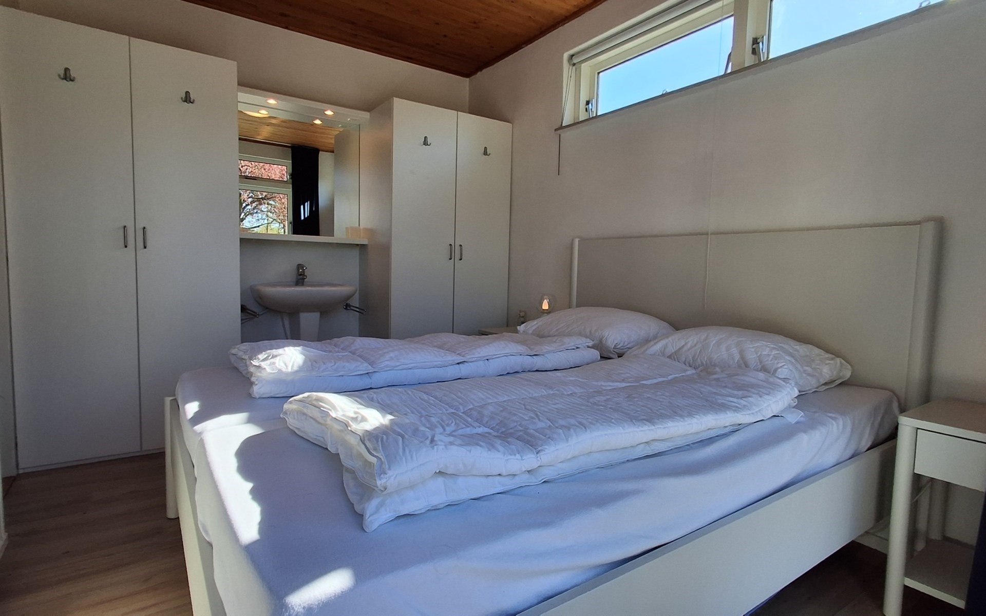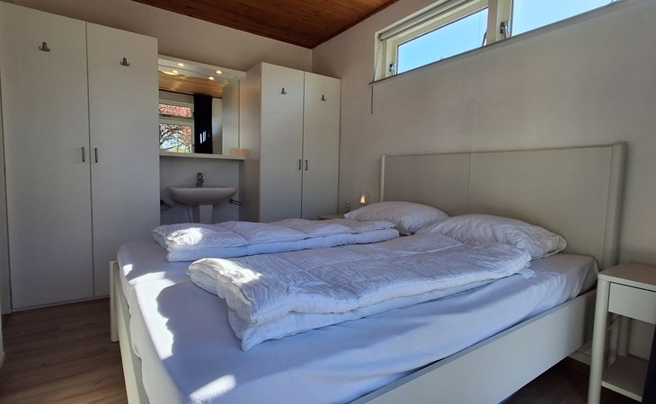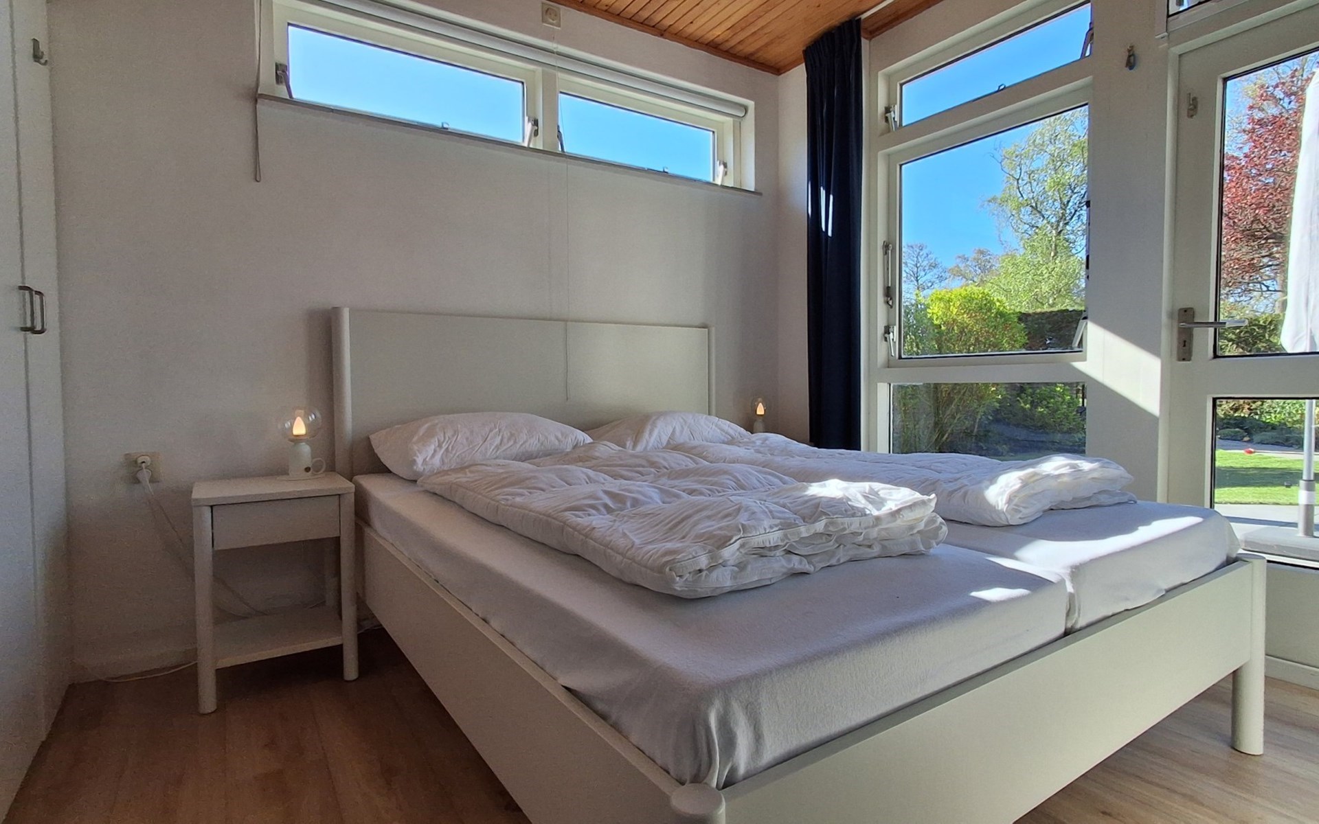 Deze gezellige, gelijkvloerse bungalow heeft een sfeervolle woonkamer met een houtkachel, een aangrenzende eethoek en een open keuken met een vaatwasser. In de woning zijn drie slaapkamers aanwezig, waarvan één met een tweepersoonsbed en een wastafel, met directe toegang tot het terras. Verder zijn er een voorraadkamer, een ruime badkamer met een douche en een apart toilet.