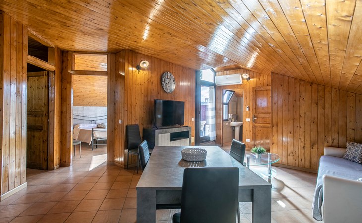 De accommodatie maakt indruk met zijn aangename inrichting en goede faciliteiten, die ideaal zijn voor uw gezin. De aantrekkelijke interieurs, met houten lambrisering en schuine plafonds, zijn ontworpen met aandacht voor detail en bieden je aangenaam comfort voor je dagelijkse gezinsleven.