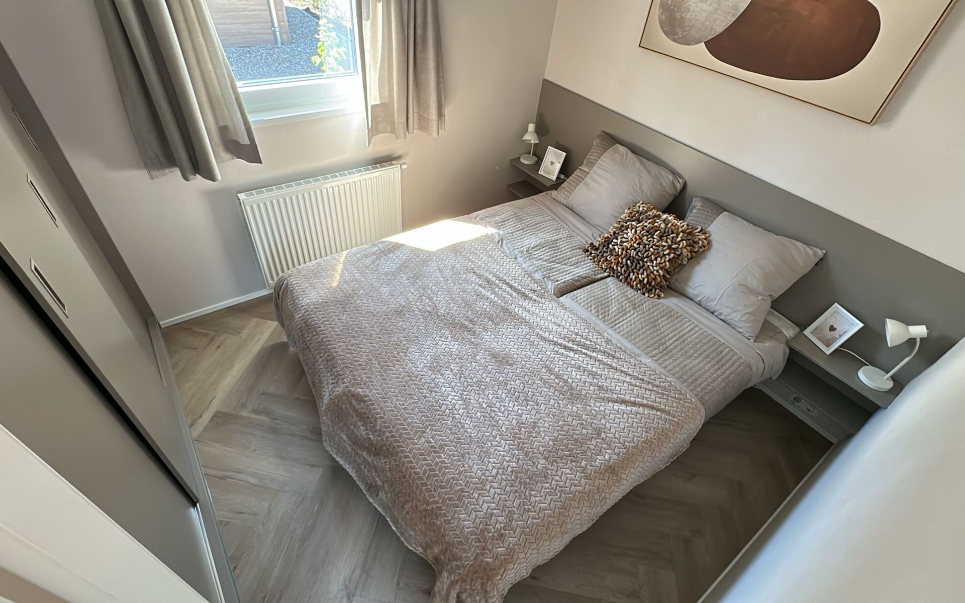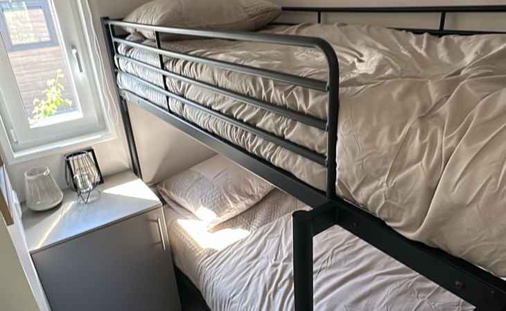 De drie slaapkamers zijn smaakvol ingericht en bieden een rustige oase voor een goede nachtrust. De eerste slaapkamer heeft een tweepersoonsbed, de tweede slaapkamer beschikt over twee eenpersoonsbedden en de derde slaapkamer heeft een stapelbed waardoor er voldoende ruimte is voor een comfortabel verblijf. Met comfortabele bedden en voldoende kastruimte voelt u zich hier meteen thuis.