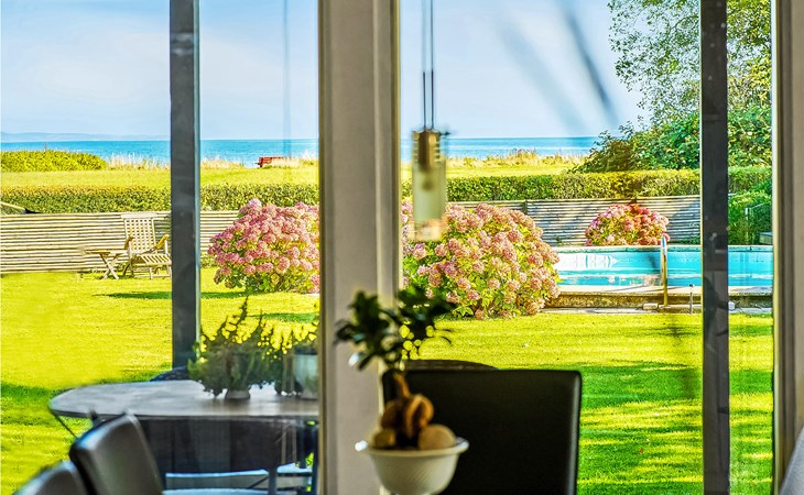 U verblijft hier aan de prachtige, groene kust ten zuiden van Aarhus, waar wind, golven en de loop van de zon het landschap domineren. Uw op zee gerichte tuin met zwembad voor verfrissing op warme zomerdagen zal een van uw favoriete plekken worden tijdens uw verblijf. Breng hier zwoele zomeravonden door met heerlijke diners op het terras, en begroet de eerste zonnestralen in de ochtend met een kopje thee.