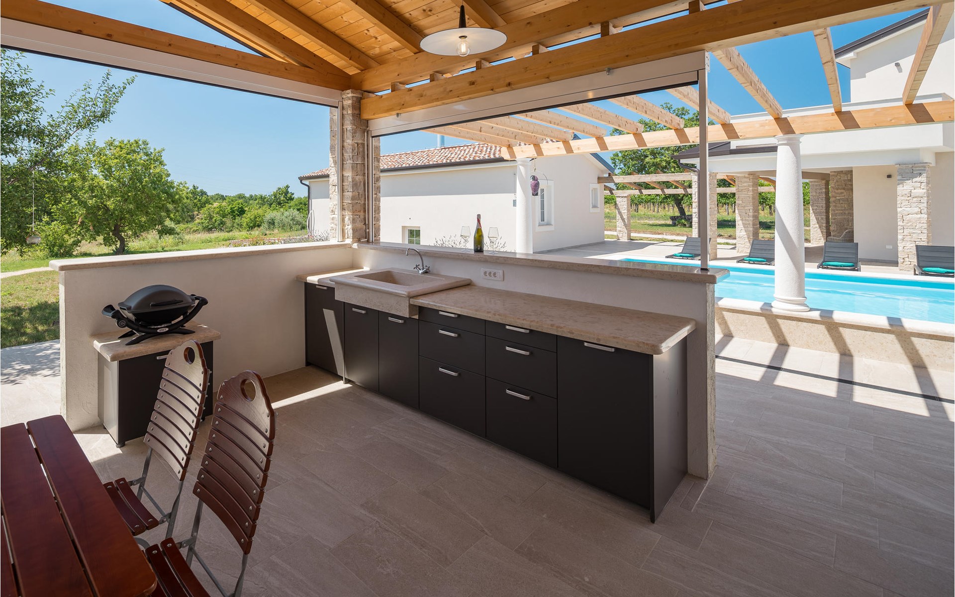 Ook in de buitenruimte heeft dit huis veel te bieden. Laat uw blik over het landschap dwalen terwijl u op het balkon uw eerste koffie drinkt. Geniet op uw gemak van de zon op de terrassen met af en toe een verfrissing in het zwembad en sluit de dag af met een al fresco diner.