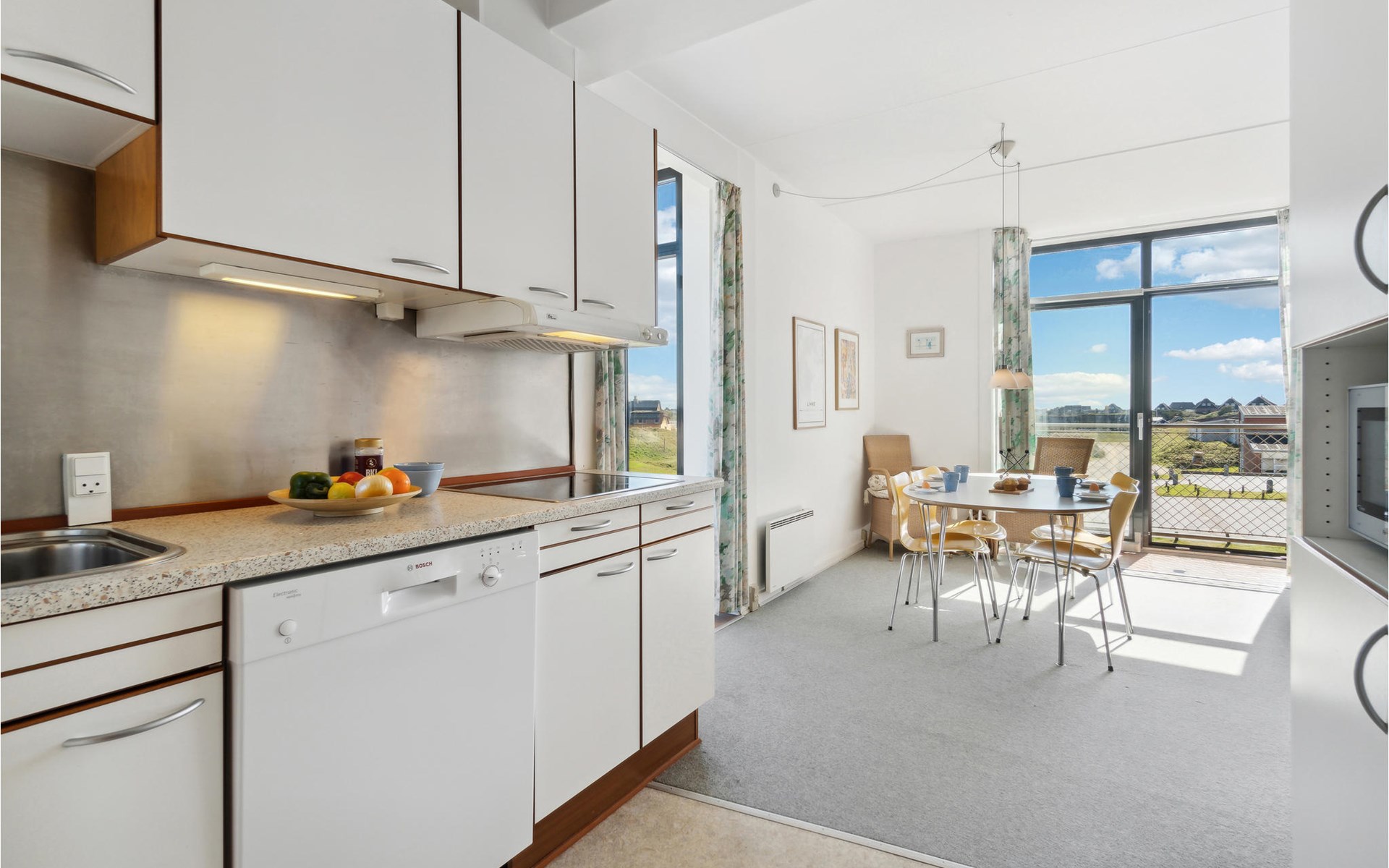 Welkom in Fanø Bad en deze lichte vakantiewoning, die u en uw kleine gezin een heerlijk thuis ver van huis biedt. Kom hier aan en voel je thuis. In de open woonkamer vind je alles wat je nodig hebt voor een zorgeloze vakantie. Maak 's ochtends een heerlijk ontbijt en maak tijdens het eten plannen voor je activiteiten en excursies op het eiland. Dankzij de ramen van vloer tot plafond, die de flat vullen met natuurlijk licht, kun je je eerste activiteiten, zoals minigolf en tennis, in de gaten houden. s Avonds kun je je voeten op de bank leggen, ontspannen en samen naar een leuke film kijken.