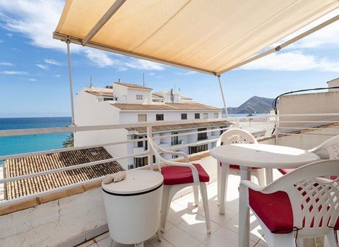 Dit elegante appartement op de eerste verdieping bestaat uit een woonkamer die uitkomt op een terras met vrij uitzicht over de urbanisatie en de Middellandse Zee. De slaapkamer heeft een badkamer en inbouwkasten. De logeerkamer heeft ook inbouwkasten. De hele flat is smaakvol ingericht en de moderne keuken is volledig uitgerust en de woonkamer heeft een grote flatscreen-tv en een stereo-installatie.
