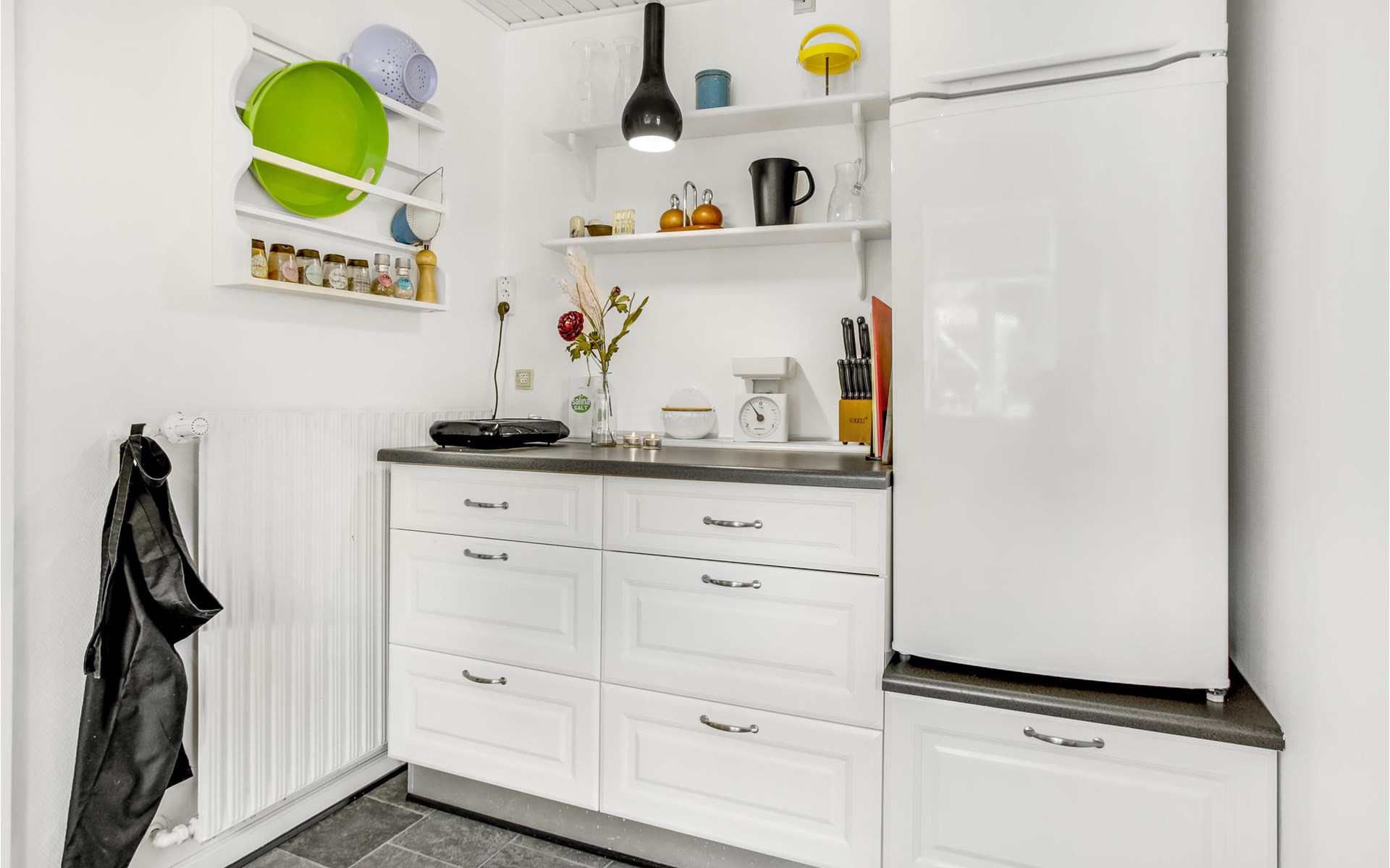 Welkom in dit vakantieappartement, dat plaats biedt aan vier personen in de slaapkamer en badkamer. Er is ook een keuken, die verdeeld is in twee kamers. De ingang, de eethoek, het fornuis en de afzuigkap bevinden zich in dezelfde ruimte. De rest van de keuken bevindt zich in de aangrenzende ruimte met vaatwasser, koelkast en spoelbak.