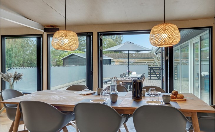 In het mooie, populaire Skødshoved, op slechts een paar minuten van Mols Berge, ligt dit vakantiehuis op een steenworp afstand van het kindvriendelijke strand. Het zwembad en de waterglijbaan zorgen voor veel plezier. s Avonds nodigen de open haard en de houtkachel uit om gezellig samen te zijn. Op de afgesloten binnenplaats kunt u in alle rust genieten van de zon of de maaltijden. Het kindvriendelijke strand ligt op een steenworp afstand en het is hier het hele jaar door heerlijk wandelen. Vlakbij is een kleine jachthaven met een goed zomerrestaurant.