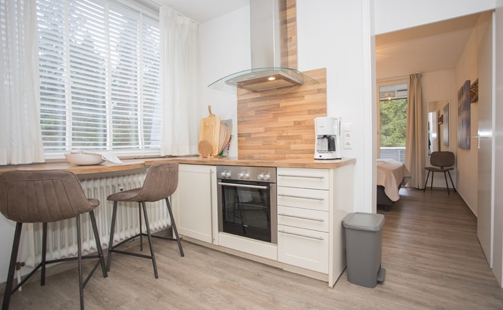 De ligging de accommodatie is erg goed, voldoende keukengerij en een ruim appartement.