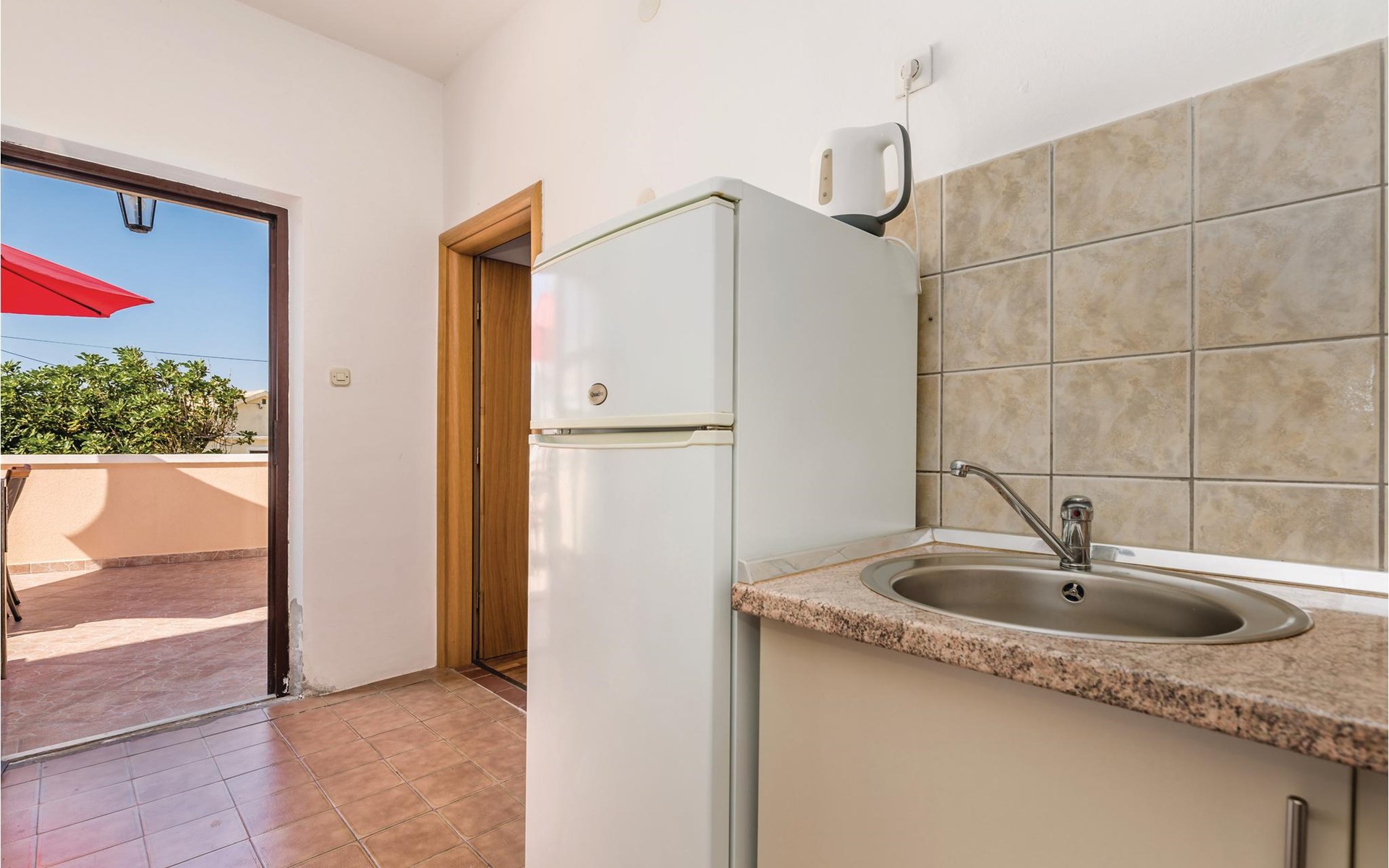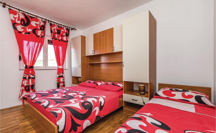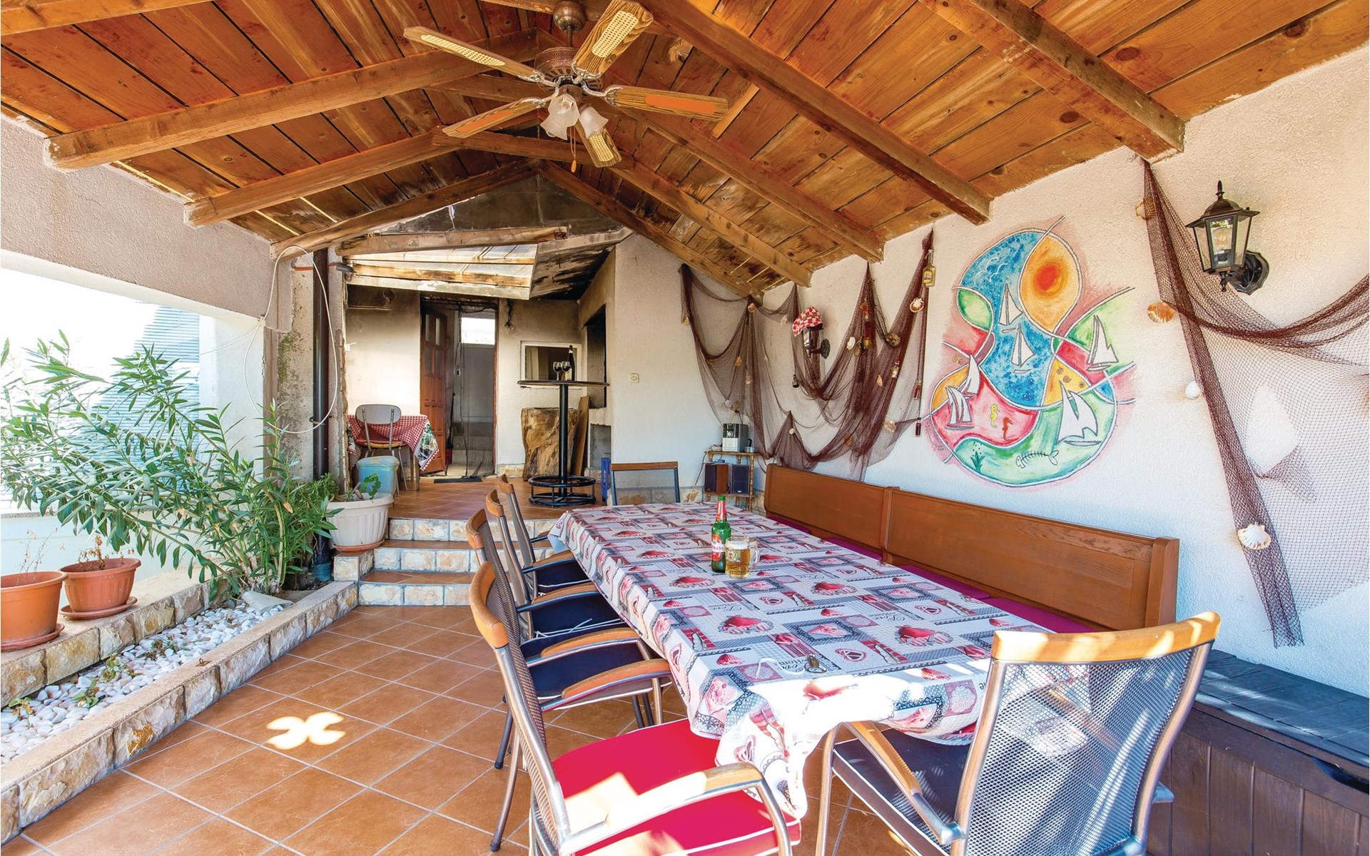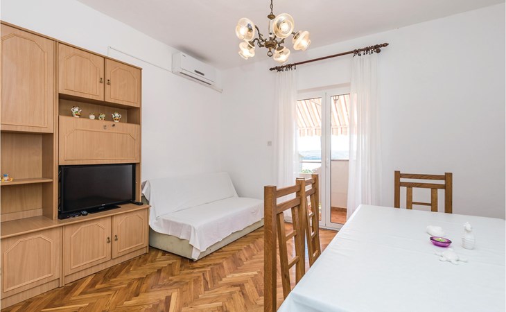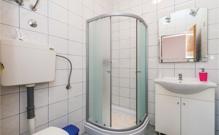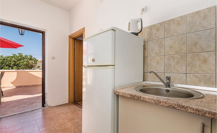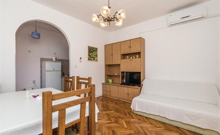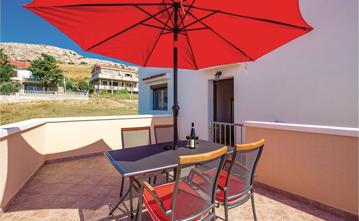 Op het niet omheinde gemeenschappelijke terrein in Dinjiska op het eiland Pag bevinden zich deze eenvoudig ingerichte vakantiewoningen in een vrijstaand huis. CKP439 heeft een gedeeltelijk uitzicht op de zee. Er is een gemeenschappelijke barbecue op het terrein.
