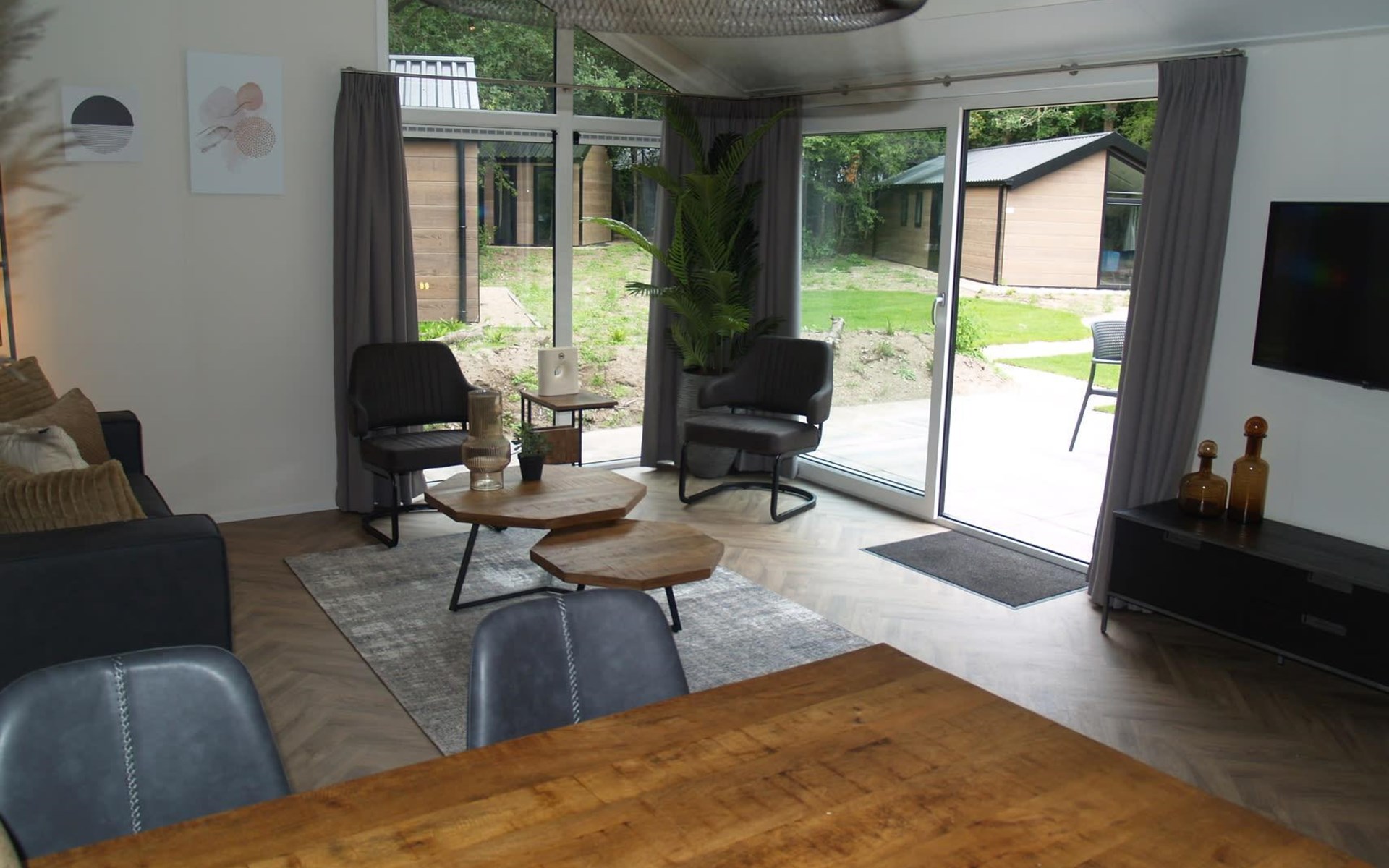 Vakantie vieren in een eigentijds chalet doe je in Velthorst Hottub 4. Dit gelijkvloerse en vrijstaande chalet biedt plaats aan maximaal 4 personen. De woonkamer heeft een gezellige zithoek met bank, televisie en een aparte eethoek. De keuken is van alle gemakken voorzien, zoals een vaatwasser, combimagnetron en filter koffiezetapparaat. Velthorst Hottub 4 heeft in totaal 2 slaapkamers, waarvan 1 met een tweepersoonsbed en 1 slaapkamer met 2 eenpersoonsbedden. In de badkamer vind je een toilet, douche en wastafel. Het chalet grenst aan een tuin met een gemeubileerd terras en een hottub. De hottub werkt op hout, dit is niet bij de prijs inbegrepen en kun je kopen bij de receptie.