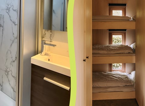 De Reeëndal Lodge beschikt over twee slaapkamers: één volledig afgesloten slaapkamer en één slaapruimte op de open vide, zodat alle gasten kunnen genieten van voldoende privacy en een unieke overnachtingservaring. De volledig uitgeruste keuken biedt alle gemakken om heerlijke maaltijden te bereiden, of je nu kiest voor een uitgebreid diner of een snelle hap na een actieve dag in de natuur.