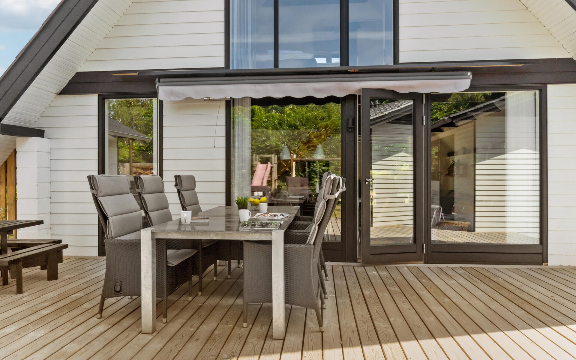 Geniet van het buitenleven en lange zomeravonden op het terras van het huis in comfortabel tuinmeubilair met specialiteiten van de barbecue.