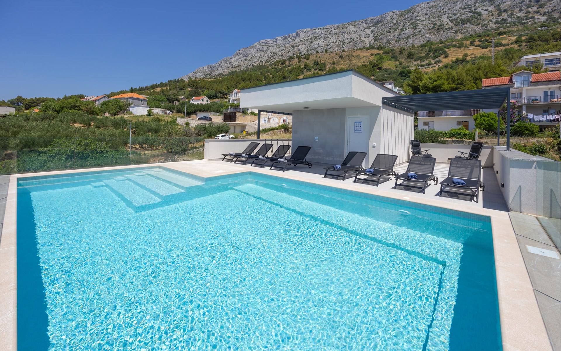 Ontspan op de comfortabele ligstoelen en laat je blik dwalen over het sprankelende water. Het gemeenschappelijke zwembad nodigt uit tot een verfrissende duik met panoramisch uitzicht, ideaal voor warme zomerdagen en romantische zonsondergangen.