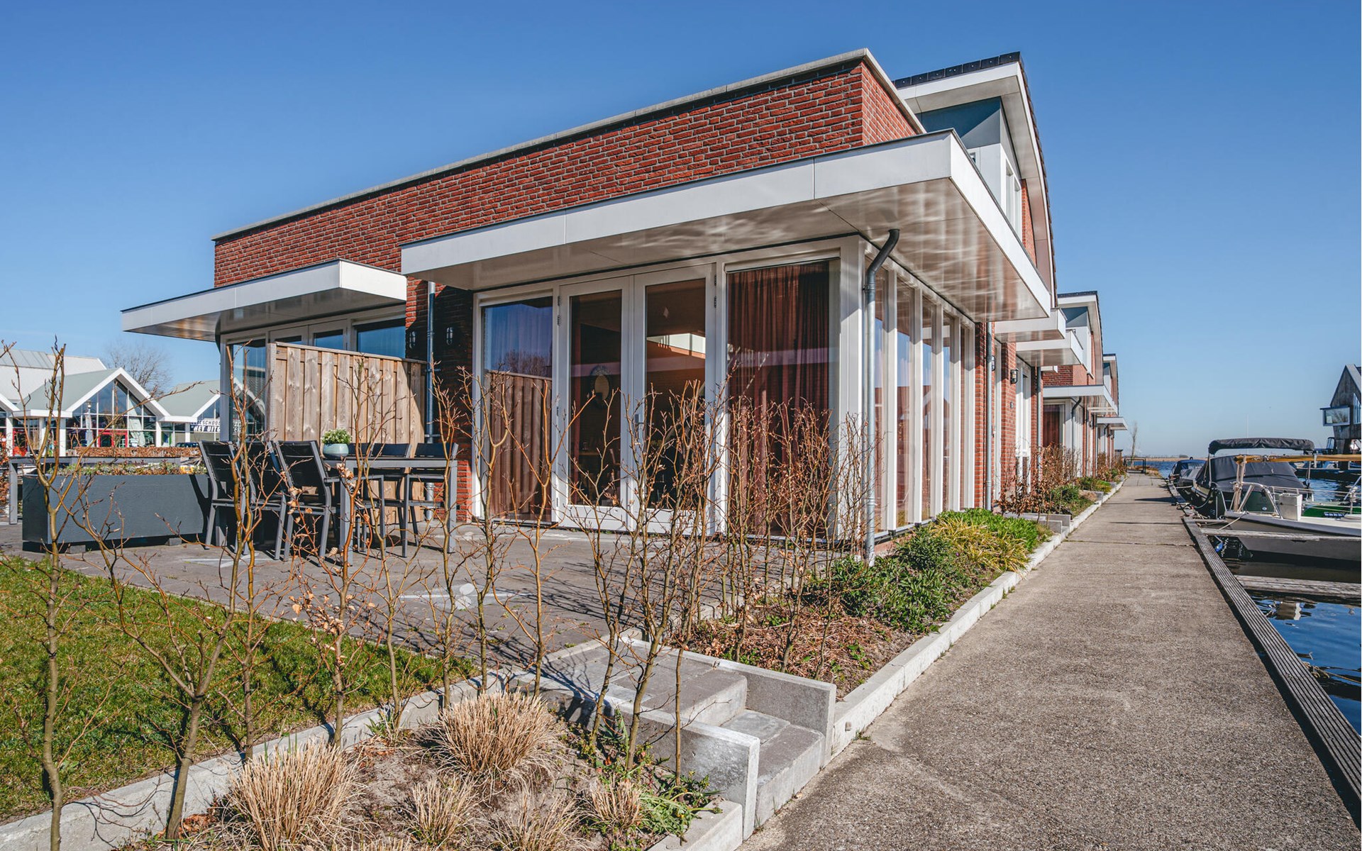 Je kunt aan het eind van de dag ontspannen op het terras aan het water en genieten van de rust en stilte die deze bijzondere locatie met zich meebrengt - een plek waar je tot rust kunt komen. Iets meer privé biedt het dakterras de ideale setting om te zonnebaden en een panoramisch uitzicht op het waterpark.