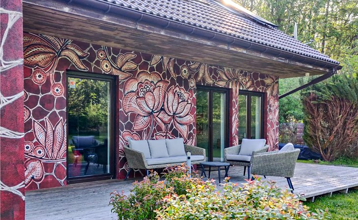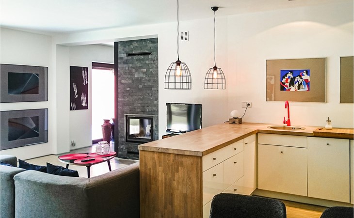 Architectonisch interessant en modern uitgerust vakantiehuis. Het is zeer rustig gelegen op een groot, omheind natuurperceel in een bos- en veldrijke omgeving. Het elegant ingerichte huis heeft een tweezijdige open haard die uitnodigt om te blijven hangen en twee kledingkasten. Dit huis is goed geïsoleerd en geschikt voor een vakantie het hele jaar door. De chique keuken staat in open verbinding met de ruime woonkamer. Alle meubels zijn harmonieus op elkaar afgestemd en zorgen voor een bijzondere sfeer. In het vakantiehuis zijn veel originele schilderijen van Poolse kunstenaars uit de jaren 60 en 70 te bewonderen. Er is vloerverwarming in de moderne badkamer. Het enorme pand is goed onderhouden en biedt veel ruimte voor buitenactiviteiten en in de omgeving is er de mogelijkheid om te watersporten of te fietsen. De tuin is omgeven door prachtige bomen. In het gemeentehuis vindt u de toeristische informatie en een geldautomaat. Afstand tot het centrum van Nowe Warpno met kerk uit XIV jaar en stadhuis uit XVII jaar is 3 KM. Langs het meer is er een mooie promenade met een strand en een uitkijkpunt. Een manege ligt op 12 km afstand.