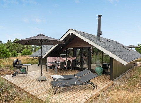 Op een prachtige locatie tussen kilometers Noordzeestrand en Ringköbing Fjord, belooft dit mooie vakantiehuis in Nörre Lyngvig je een geweldige familievakantie. Stap binnen en geniet van het lichte en Scandinavische interieur, dat het huis een gezellige sfeer geeft. Steek het vuur aan in de houtkachel en voel je meteen thuis. Na je activiteiten, wandelingen of fietstochten kun je ontspannen in de sauna of genieten van de laatste uurtjes zon en de vakantielucht op het ruime houten terras.