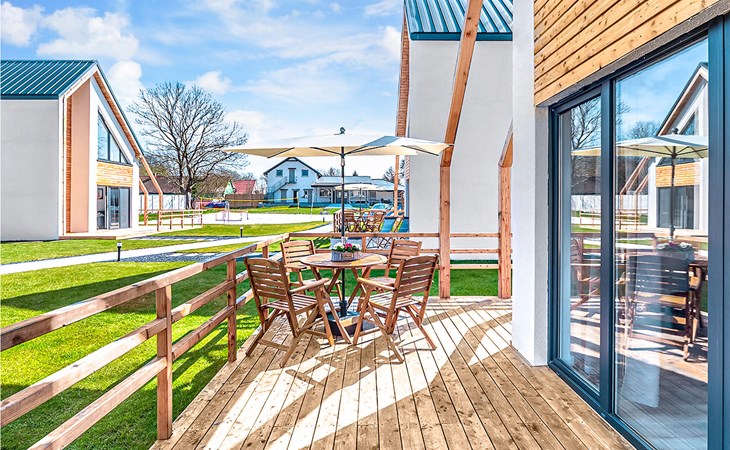 Je huis maakt deel uit van een harmonieus vakantiehuisensemble en biedt je een ideaal uitgangspunt voor ontspannen vakantieplezier op een rustige locatie. De inrichting is modern en eigentijds, de sfeer is vrolijk en stijlvol. Begin je dag met een heerlijk ontbijt in de open eethoek of op het terras, laat de kinderen spelen in de speeltuin naast de deur terwijl jij het avondeten bereidt. Het water is hier niet ver vandaan.