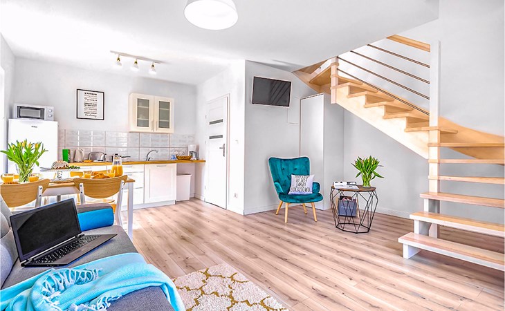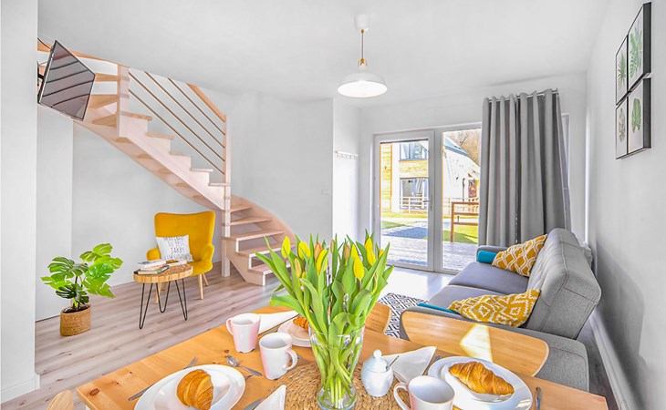 Modern, vrolijk vakantiehuis in een populair vakantieoord aan de Oostzee.