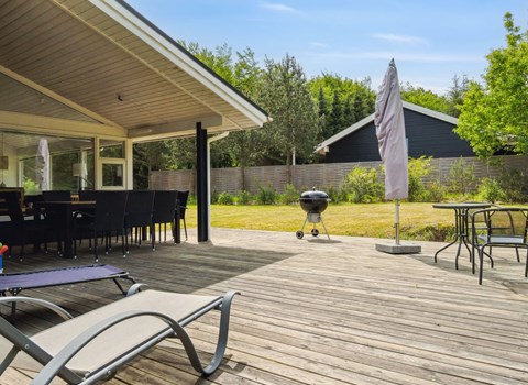 Vanuit zowel de keuken als de biljartkamer heeft u toegang tot het grote zuidwestelijke terras waar u kunt genieten van de zonsondergangen. Het huis ligt aan het einde van een doodlopende weg en dicht bij de golfbaan, minigolf, bowling, restaurants en kartcentrum.