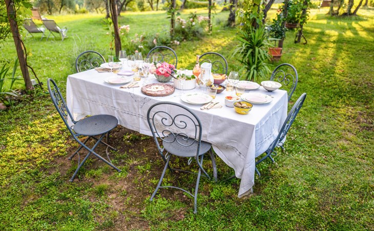 Stap de tuin in, de ideale plek om te genieten van de zon, te lezen in de schaduw van de bomen, buiten te dineren of te genieten van een koud drankje op een warme zomeravond.