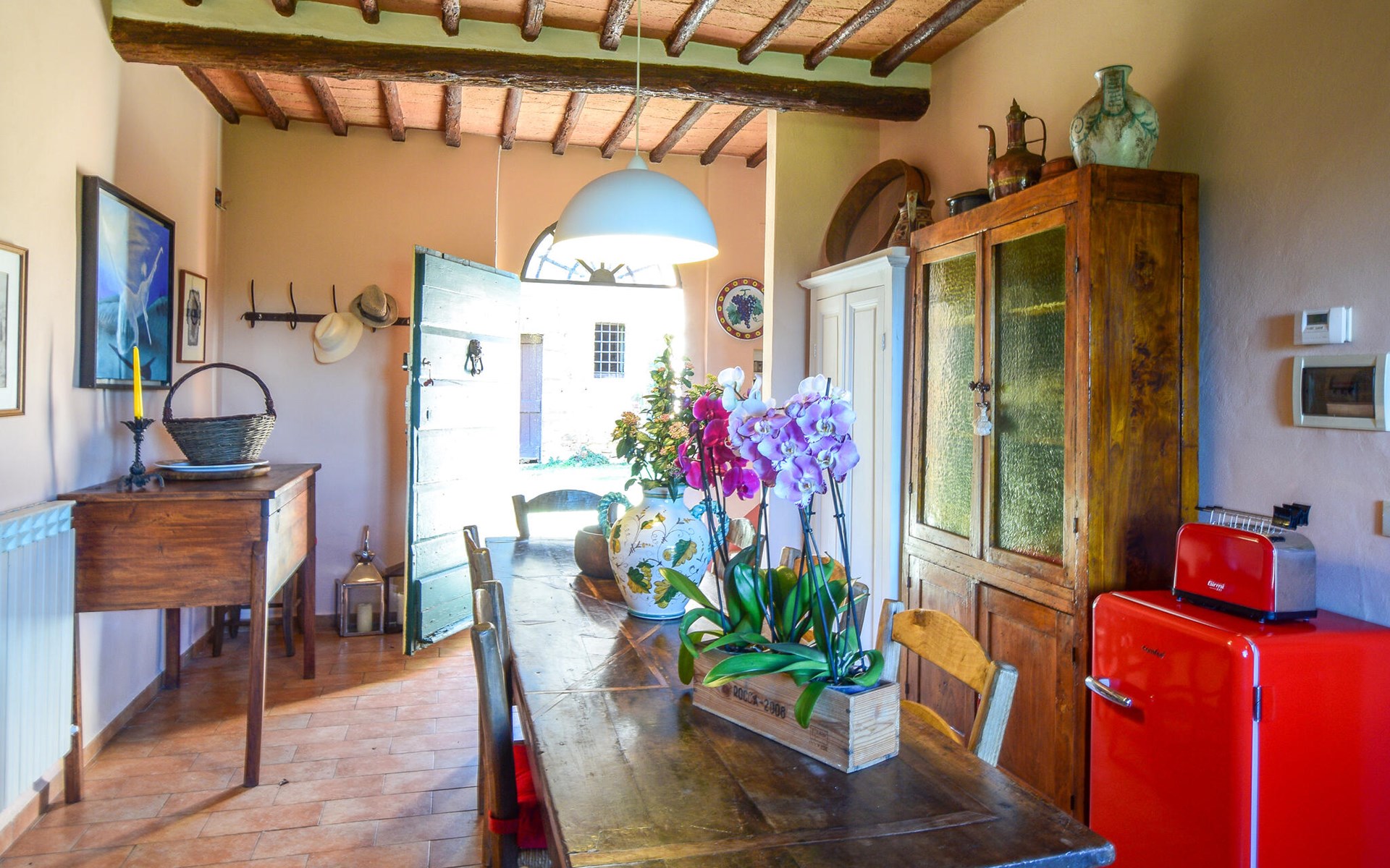 Welkom in het uitnodigende huis, waar je wordt omringd door het prachtige Toscaanse platteland. Mediterrane kleuren en decoratieve houten plafonds creëren een huiselijke sfeer en het huis is de ideale omgeving voor een heerlijke tijd met het gezin. Maak het je gemakkelijk na je excursies en maak plannen voor de komende dagen.