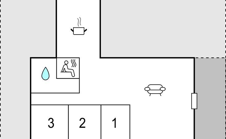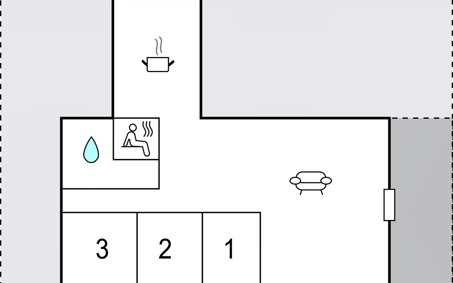 De leefruimte van het huis is verdeeld in drie slaapkamers, een badkamer, een eetkeuken en een badkamer met douche. Het hart van het huis is de prachtige woonruimte met open keuken, eet- en bankhoek, waar u de dag met familie of vrienden kunt afsluiten met een vuurtje in de open haard.