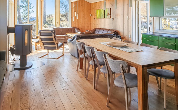 Modern milieuvriendelijk vakantiehuis in het hooggebergte met panoramisch uitzicht over het dal en het idyllische waternetwerk met beekjes en watervallen. Goede vismogelijkheden. Super wandelgebied en veel wild in de omgeving. U kunt bessen en paddenstoelen in overvloed plukken direct bij het huis. Zeer geschikt voor meerdere gezinnen. Langlaufski's te huur bij Hillestad Galleri. Wandel langs de Sentrumsloipe, die langs het Elvarheim Museum loopt, waar u tentoonstellingen kunt zien over jagen en vallen zetten, collecties messen en opgezette dieren, en een workshop vioolbouw. Naar het huis N34868 is 50 m. 01.11.-30.04.: Banden met spikes of sneeuwkettingen noodzakelijk.