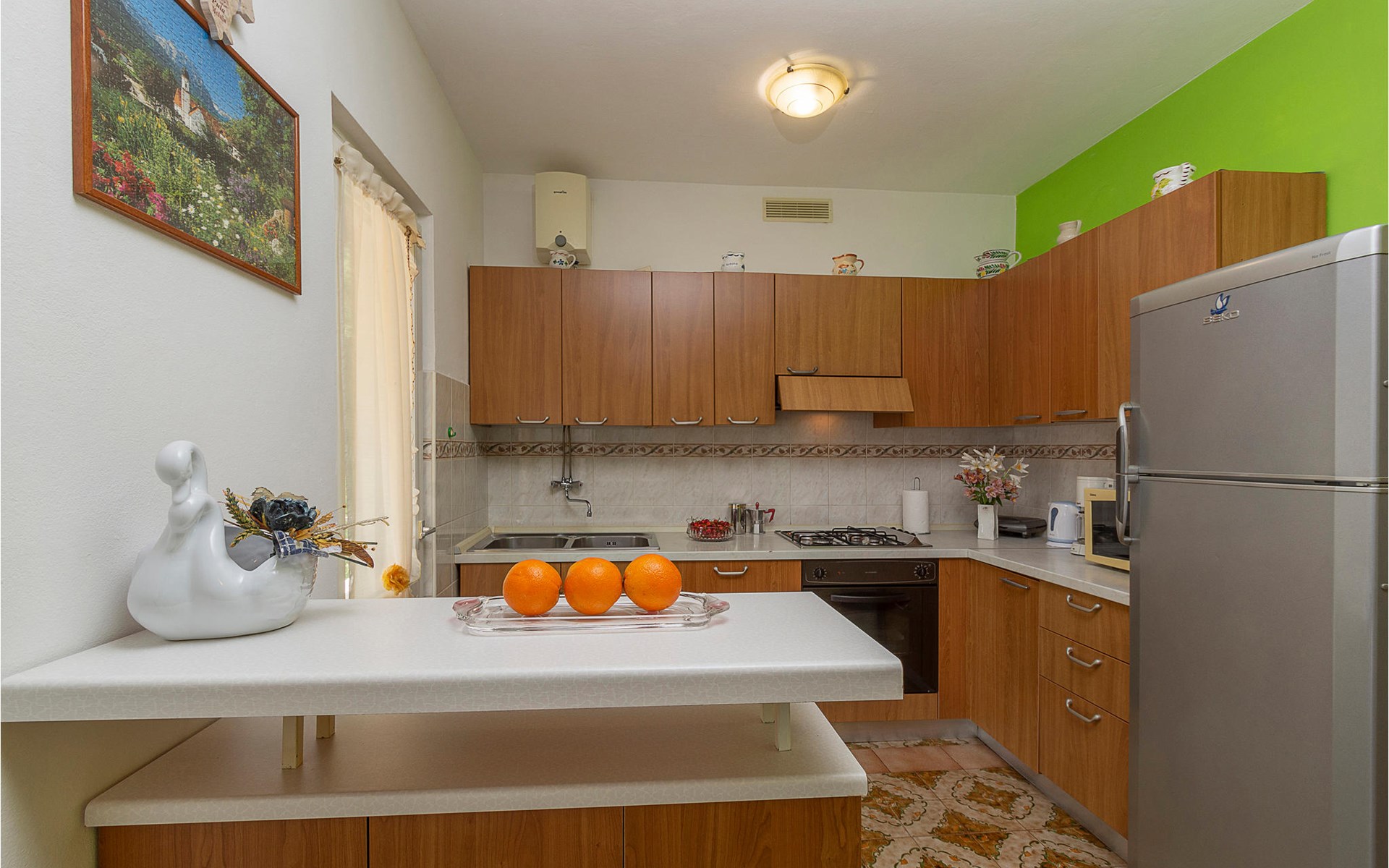 In de keuken kunt u heerlijke maaltijden bereiden waar u ook kunt eten, of wat dacht u van een heerlijk diner op het terras met een schitterende zonsondergang? Er zijn ook goede winkelmogelijkheden en restaurants in het stadje. Laat u verwennen met klassieke gerechten en lokale specialiteiten. Met en in dit huis ontdekt u met uw gezin Kroatië.
