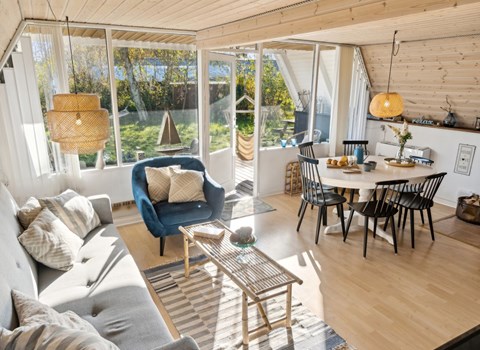 Dichtbij het natuurreservaat rond de vuurtoren van Nr. Lyngby biedt je gezellige stenen huis met rieten dak je een ideaal uitje te midden van een schilderachtig landschap. Je kunt een smaakvolle inrichting verwachten die een gezellige sfeer creëert met warme kleuren en hoogwaardige materialen. De ruime woonkamer met gezellige zithoek nodigt je uit om te ontspannen. Geniet van de warmte van de open haard, die een magische vakantiesfeer creëert, vooral op koelere avonden. De goed uitgeruste keuken heeft alles wat je nodig hebt om heerlijke maaltijden te bereiden. Vanuit de eethoek heb je een prachtig uitzicht op het omliggende platteland door de grote panoramische ramen.