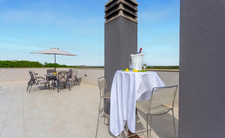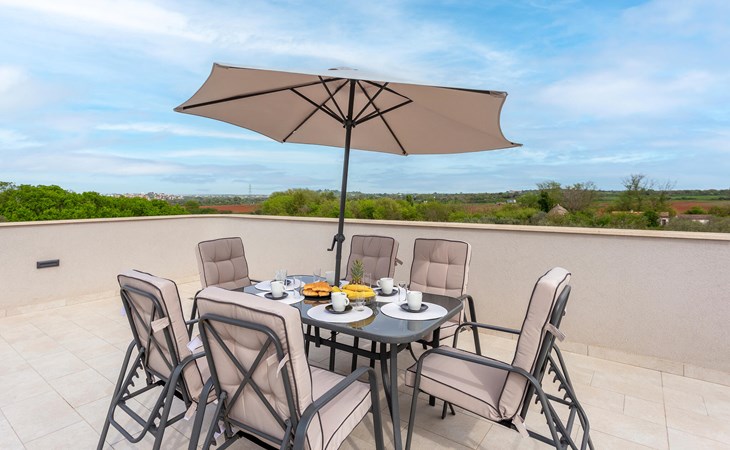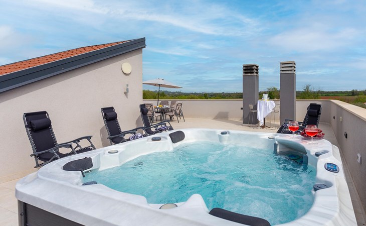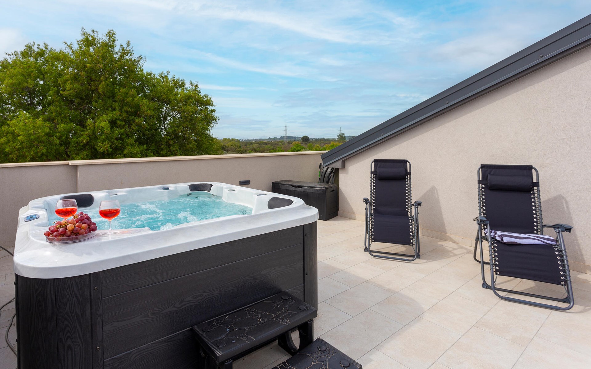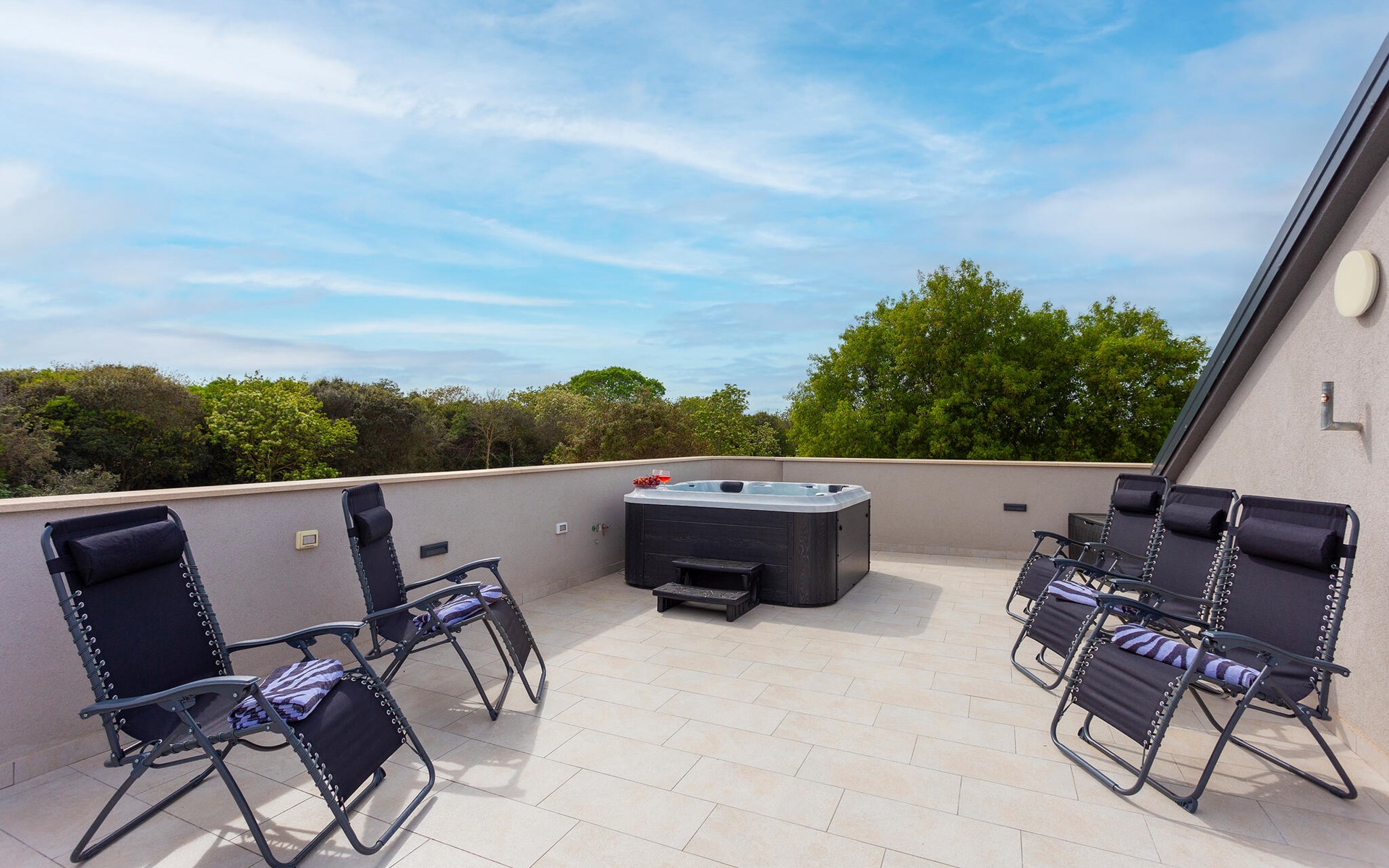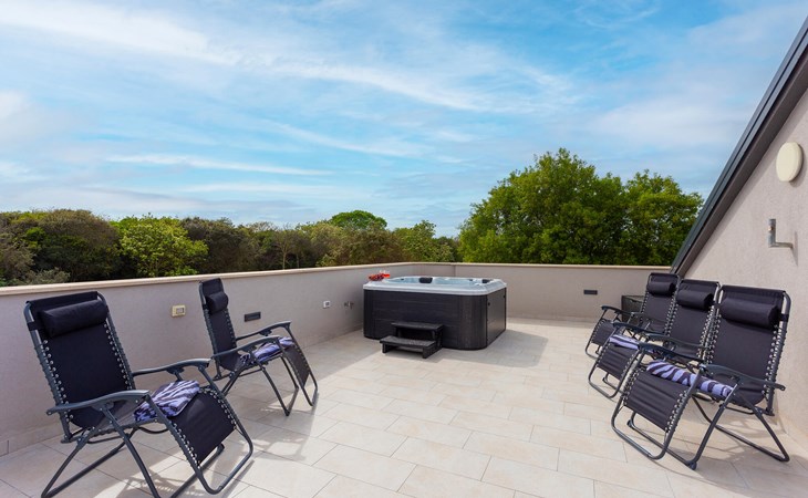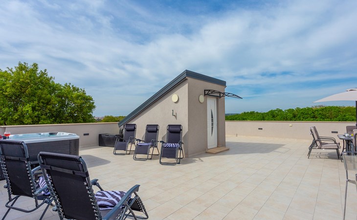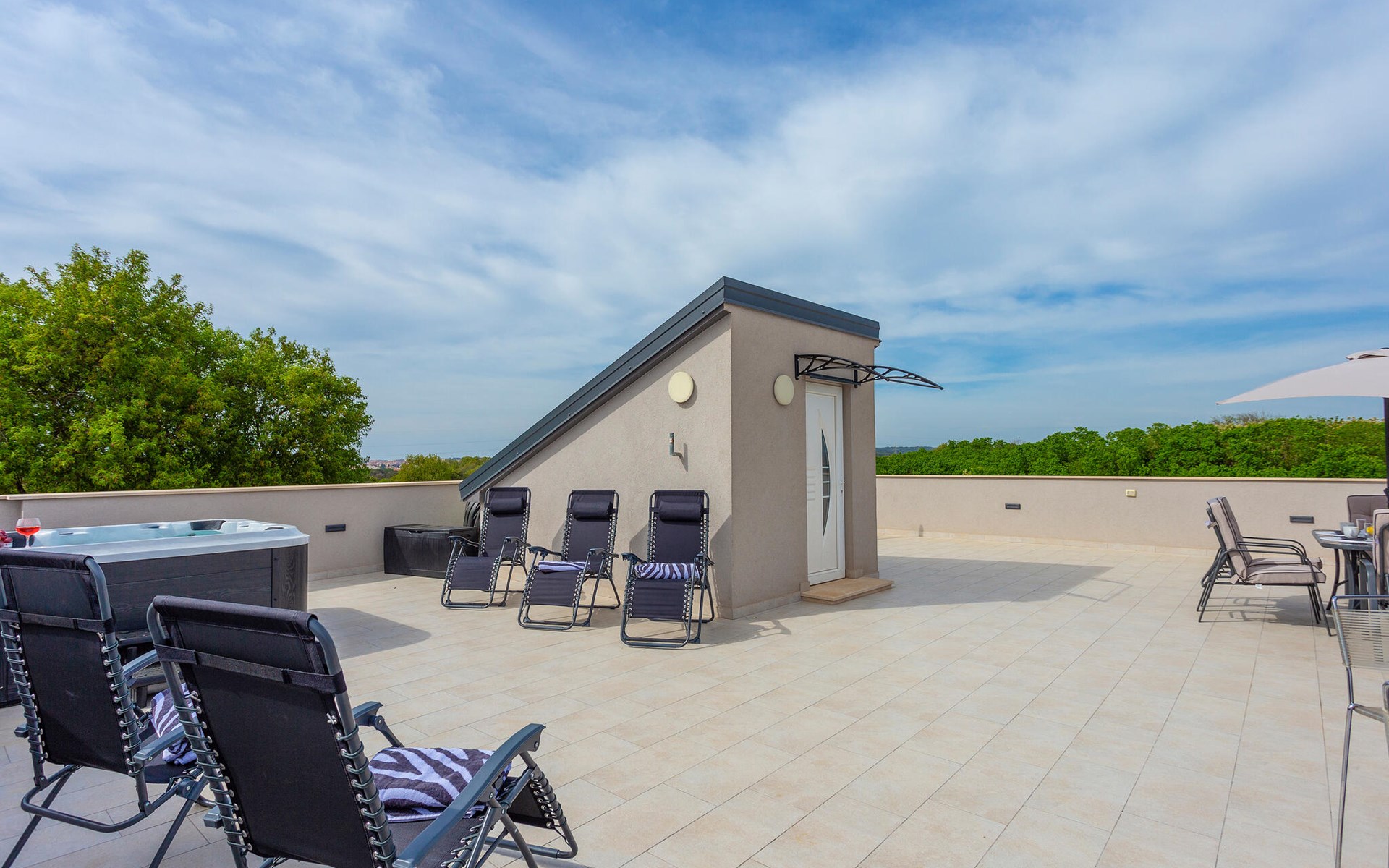 Dit mooie vakantiehuis met een groot dakterras en whirlpool verwelkomt je in een rustige buitenwijk van Pula.