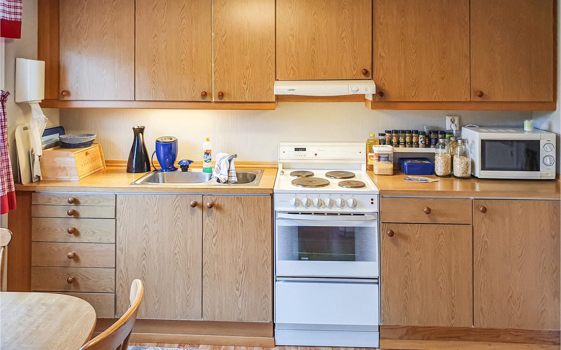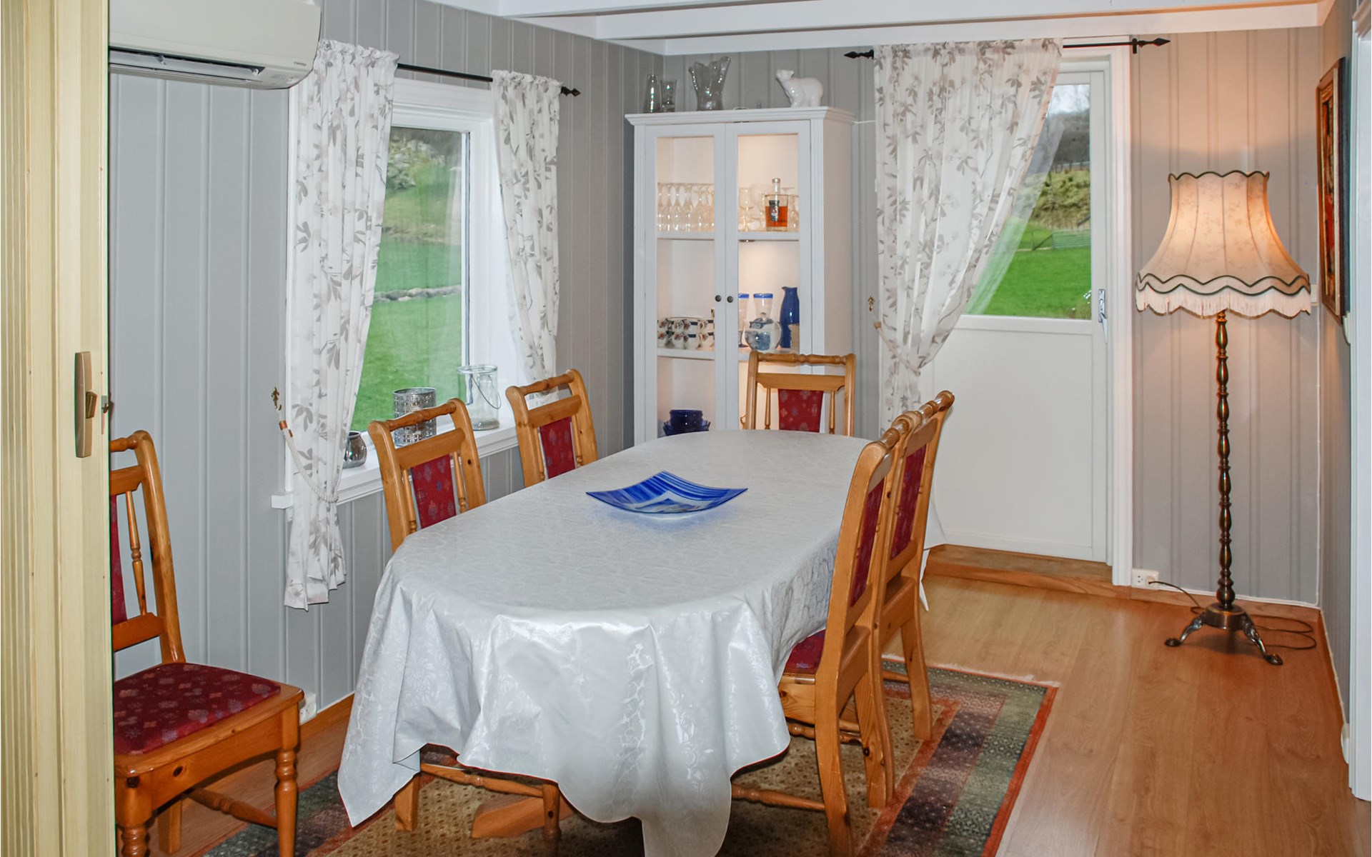 Dit grote en mooie vakantiehuis is prachtig ingericht met heldere kleuren en mooie meubels. Aan de eettafel kunt u samenkomen voor de maaltijden en de activiteiten van de dag plannen. Na een mooie dag in de natuur of een vistocht kunt u wegzakken in de grote bank met een spannend boek en een warm drankje. Er is gratis wifi beschikbaar in het huis.
