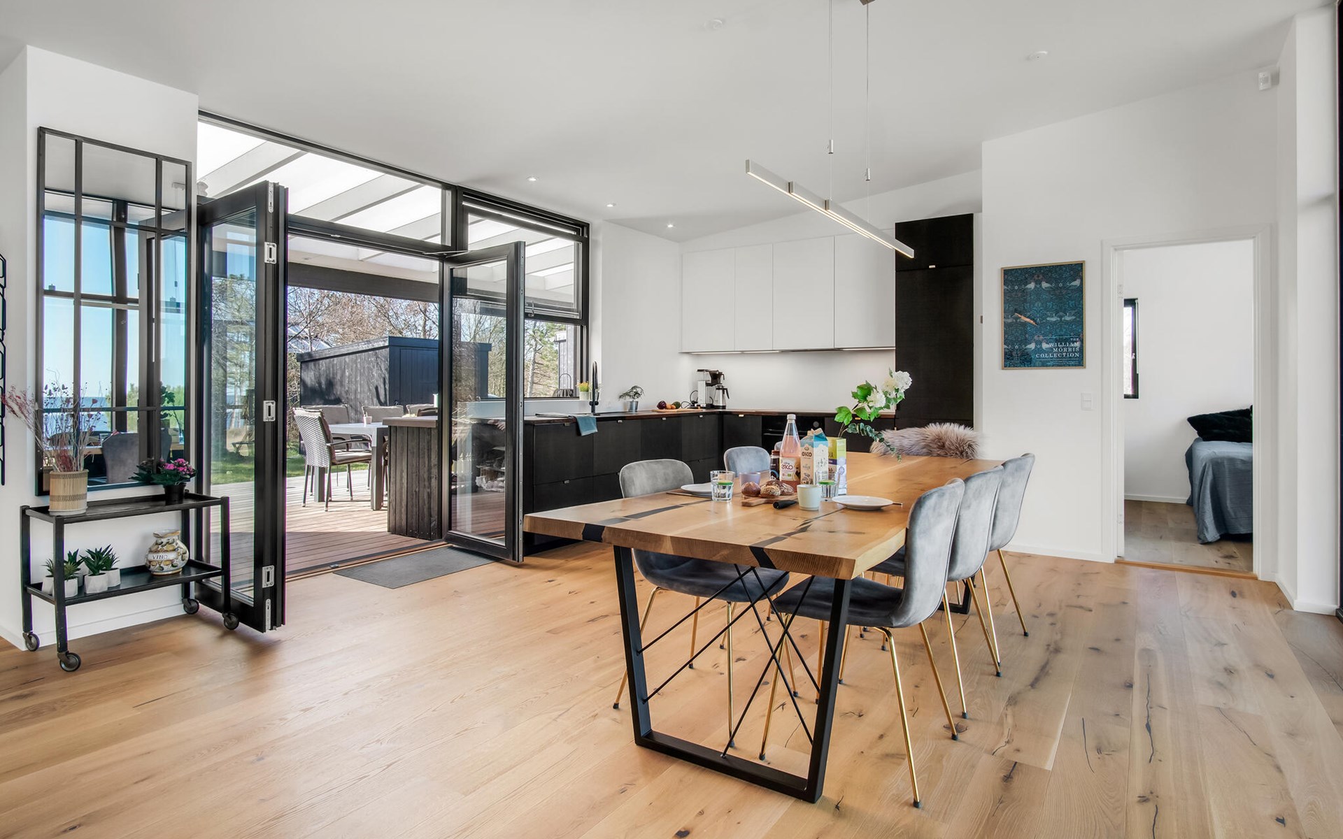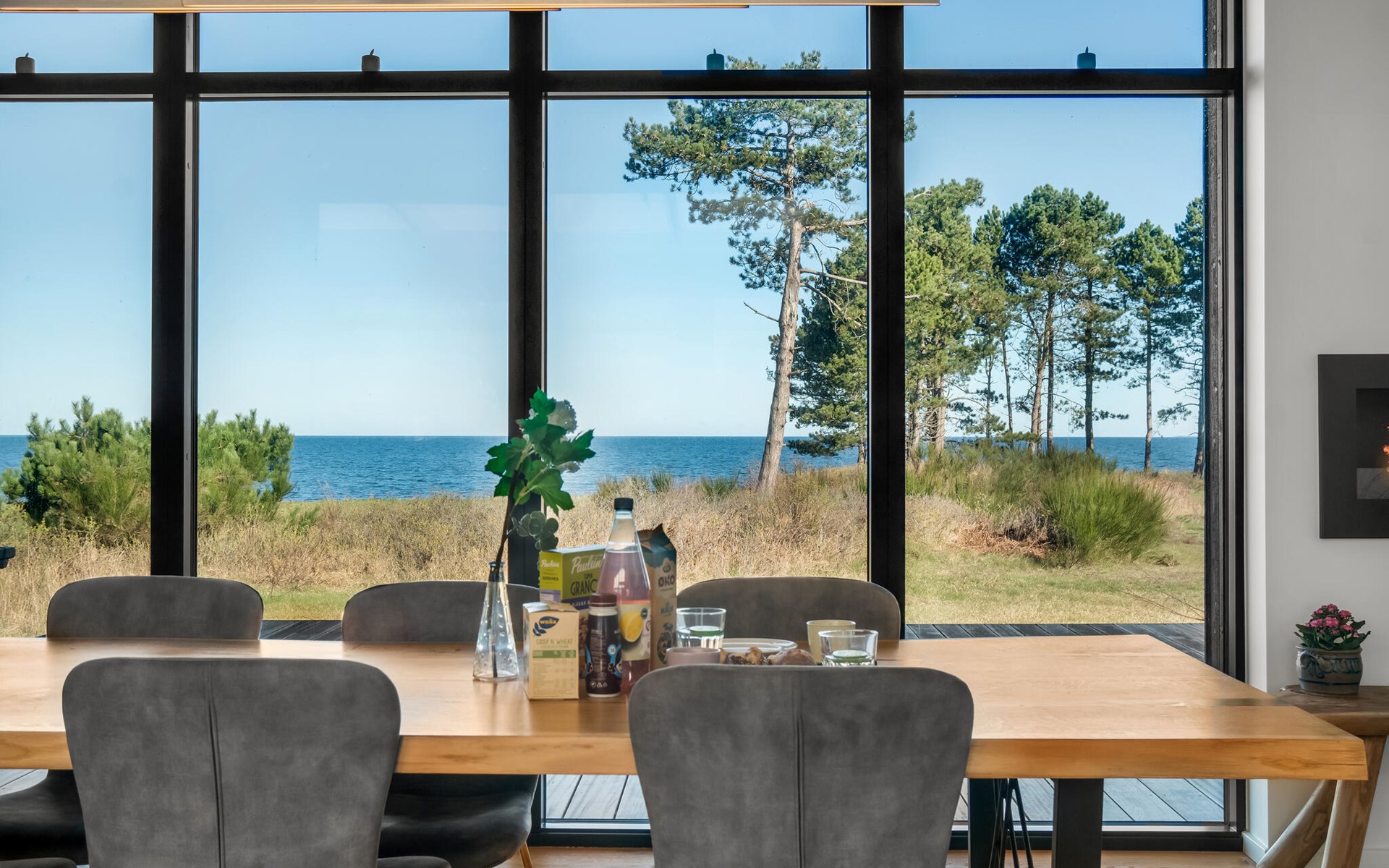 Welkom in dit luxe huis met panoramisch uitzicht op het water en ruimte voor een groot gezin. Het huis biedt open ruimtes met fantastisch licht dankzij de vele panoramische ramen. Bijzonder indrukwekkend is de grote gecombineerde woon- en eetkamer met open keuken. Hier vindt u een prachtige eettafel met ruimte voor veel gasten en een grote bank waar het hele gezin kan ontspannen tijdens gezellige filmavonden. Wat u hier ook doet, u kunt genieten van het prachtige panoramische uitzicht op zee.