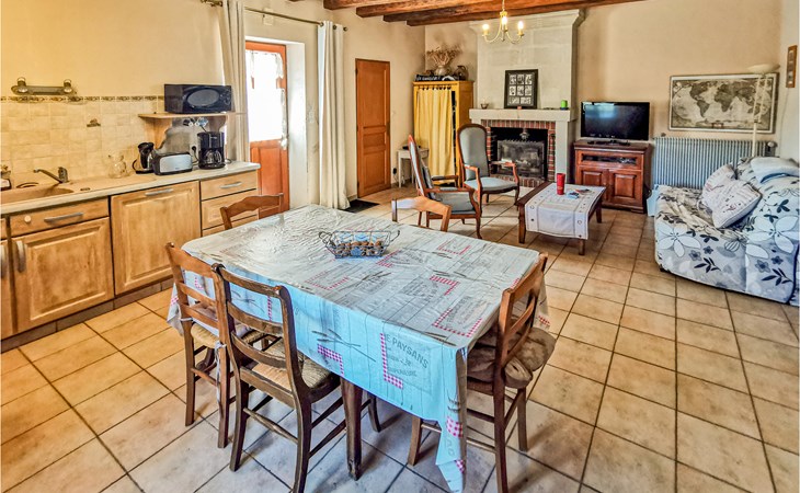 Je vakantiehuis biedt jou en je familie of vrienden een praktische uitvalsbasis voor een afwisselende vakantie. Geniet van de rust van de locatie en de nabijheid van een zwemmeer met zandstrand. Stap binnen en maak het jezelf gemakkelijk in de grote woonkamer. Neem plaats in de comfortabele fauteuils, ontspan op de bank of gebruik de tv voor een rustige avond. De open haard creëert een gezellige sfeer en nodigt je uit om op te warmen na een excursie. Neem je maaltijden aan de eettafel en bereid ze in de gezellige, open keuken.
