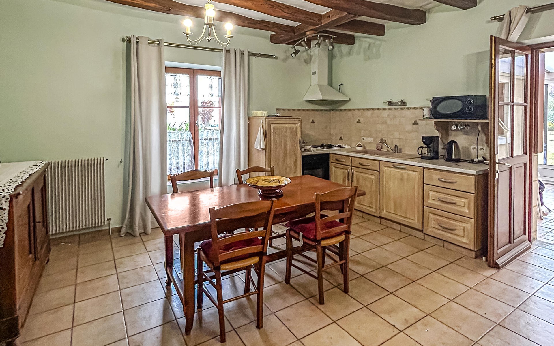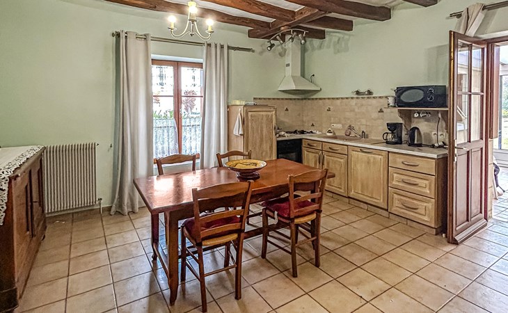 Je vakantiehuis biedt jou en je familie of vrienden een praktische uitvalsbasis voor een afwisselende vakantie. Geniet van de rust van de locatie en de nabijheid van een zwemmeer met zandstrand. Stap binnen en maak het jezelf gemakkelijk in de grote woonkamer. Neem plaats in de comfortabele fauteuils, ontspan op de bank of gebruik de tv voor een rustige avond. De open haard creëert een gezellige sfeer en nodigt je uit om op te warmen na een excursie. Neem je maaltijden aan de eettafel en bereid ze in de gezellige, open keuken.