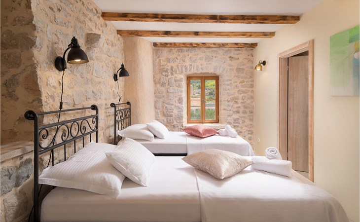 Villa Bea is gebouwd in een rustieke stijl en biedt haar gasten 120 m2 leefruimte, terwijl de totale oppervlakte van het pand 150 m2 is. Het is geschikt voor maximaal 6 personen, met een optimaal aantal van 4. Je wordt comfortabel ondergebracht in 2 slaapkamers, waarvan er één is ingericht met 2 eenpersoonsbedden die kunnen worden samengevoegd tot een tweepersoonsbed en zich op de eerste verdieping bevindt, terwijl de andere slaapkamer op de tweede verdieping van de villa is ingericht met een tweepersoonsbed (180x200). De villa beschikt tevens over twee badkamers met douche en een apart toilet.