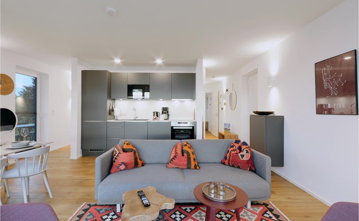 Welkom in je appartement, dat een gezellige, huiselijke sfeer biedt met Scandinavisch designmeubilair voor maximaal 6 personen. De open haard zorgt voor een gezellige warmte en op het balkon kun je een frisse neus halen. In de open keuken kun je elk recept koken voor vrienden of familie.
