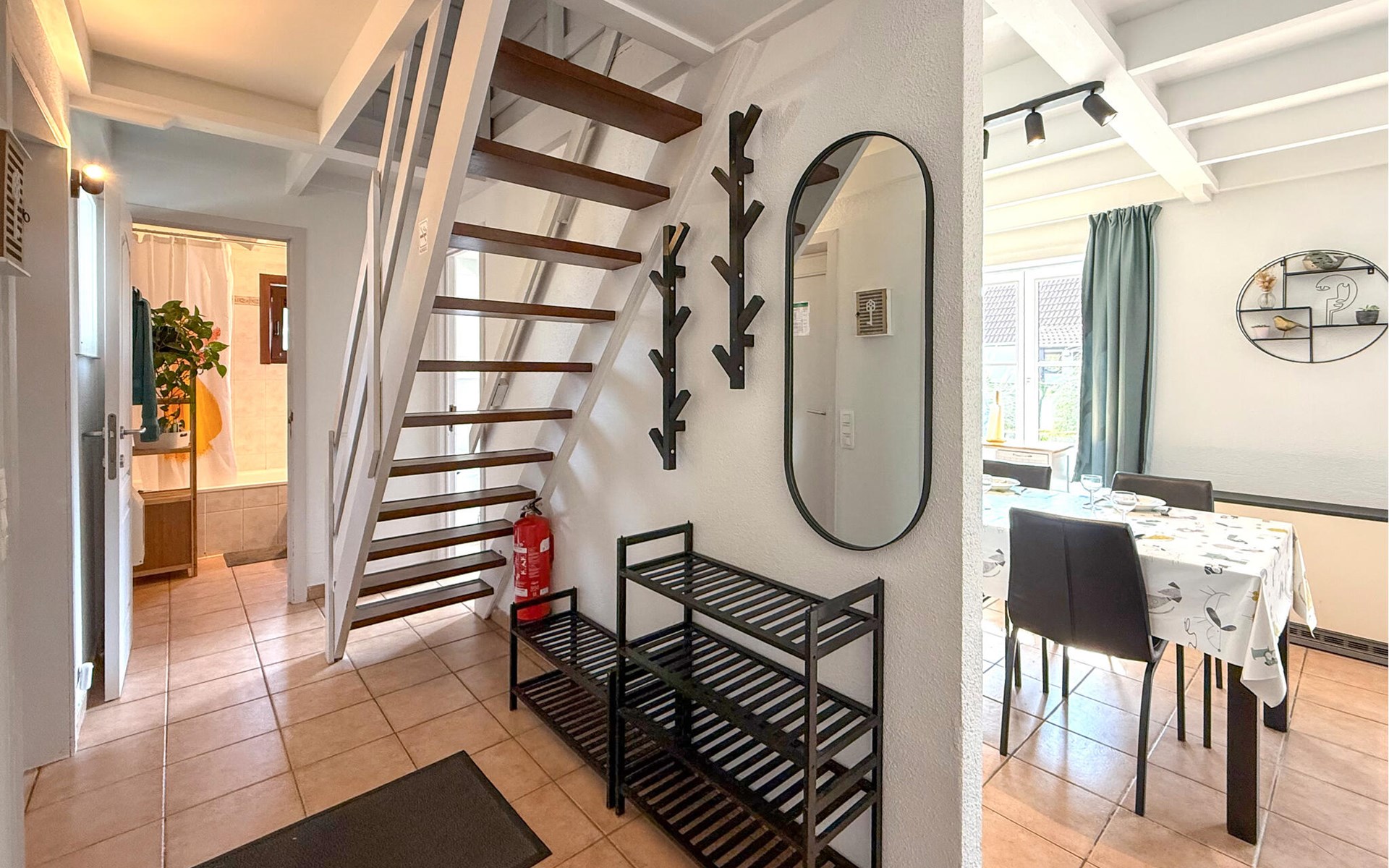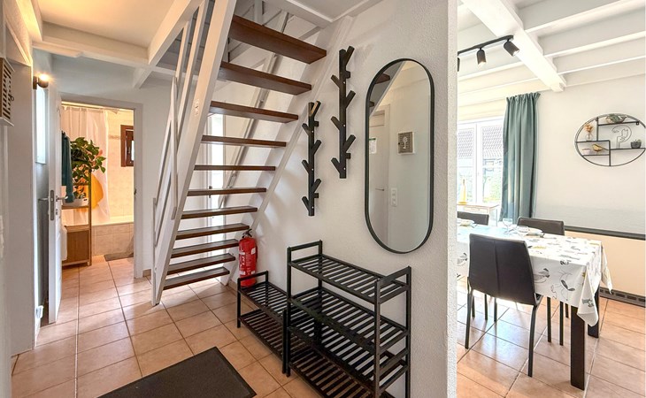 De omheinde tuin biedt een kleine oase voor heerlijke uren buiten. Laat de kinderen zich vermaken op het gazon terwijl u ontspant in het tuinmeubilair met een koud drankje. Een barbecue is beschikbaar voor de heldere zomeravonden. Profiteer van het gemeenschappelijke zwembad voor een verfrissende duik in het water.