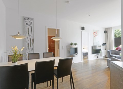 In het vakantiehuis kunt u veel entertainment verwachten met een Blu-Ray speler en twee tv's. Dankzij de galerijachtige eerste verdieping en de panoramische ramen is het huis licht en vriendelijk, en de inrichting met veel hout en warme tinten draagt bij aan de gezelligheid. Een barbecue is beschikbaar op het ruime terras, zodat niets een stevige barbecue-avond in de weg staat. Aan de achterkant van het huis nodigt een dubbele bank met tafel uit tot vertoeven en biedt een weids uitzicht over weilanden en velden.