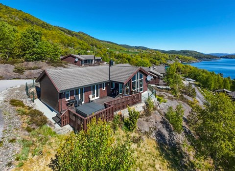 Deze charmante hut in Lykkja ligt op een schilderachtige heuvel en biedt je een adembenemend uitzicht op de bergen Skogshorn en Storevatn en op de majestueuze waterval Hydnefossen. Binnen vind je een gezellige sfeer met traditionele en moderne elementen. De ruime woonkamer met grote ramen vangt het licht en het spectaculaire uitzicht, terwijl de goed uitgeruste keuken uitnodigt om samen te koken. Na een actieve dag kun je ontspannen op het terras en genieten van de frisse berglucht.