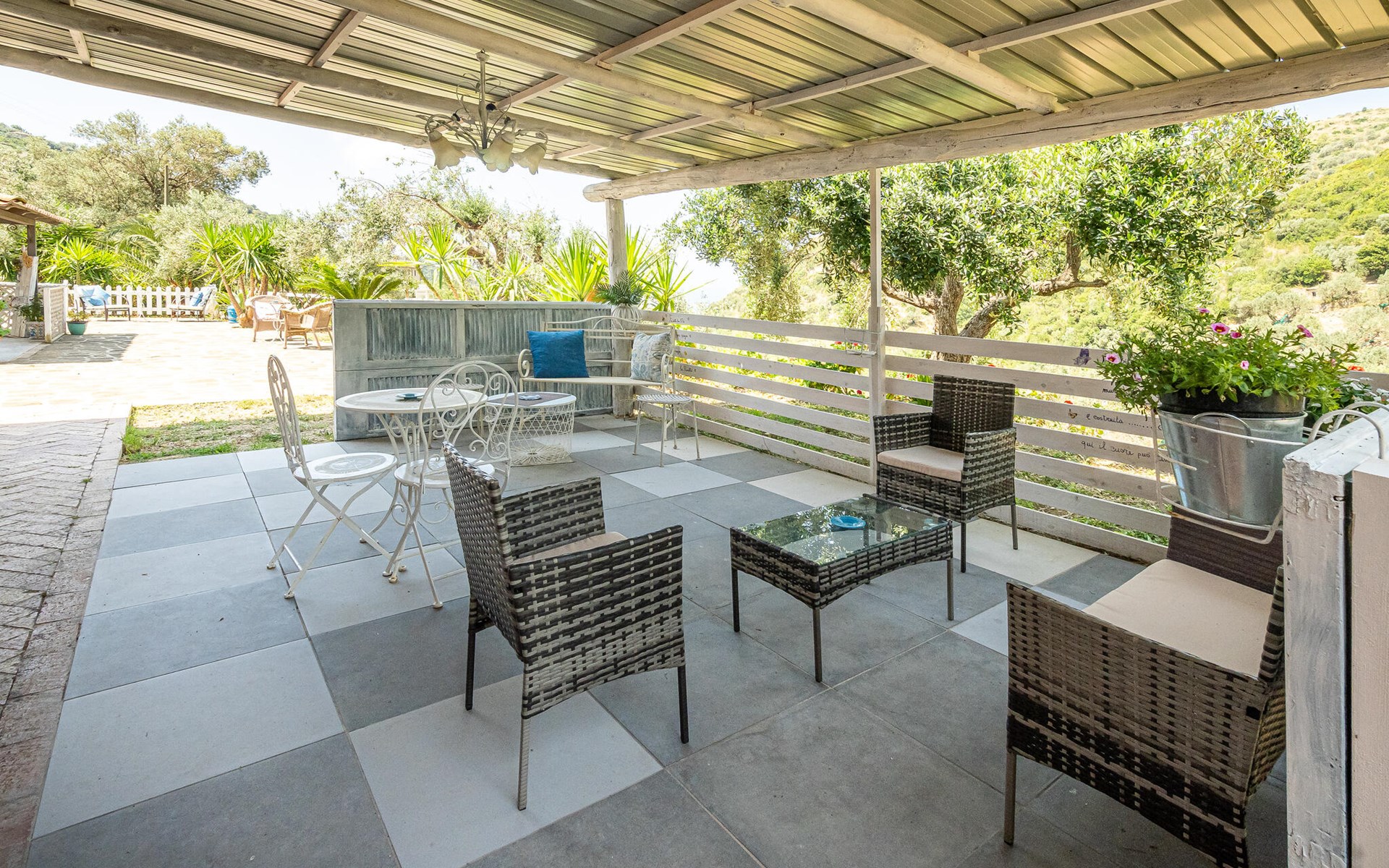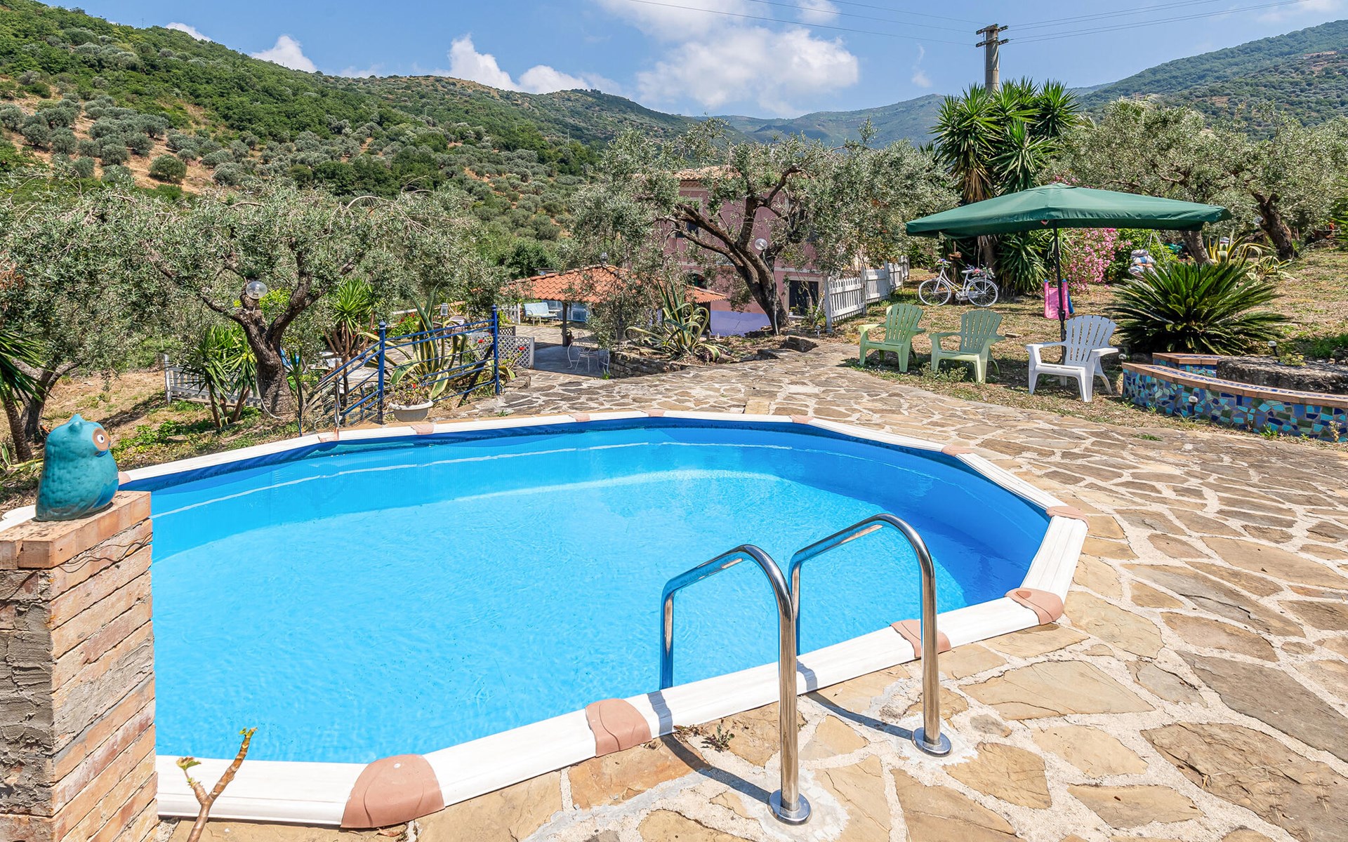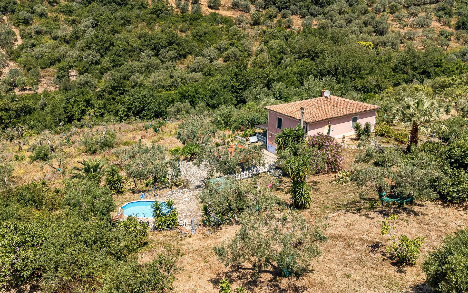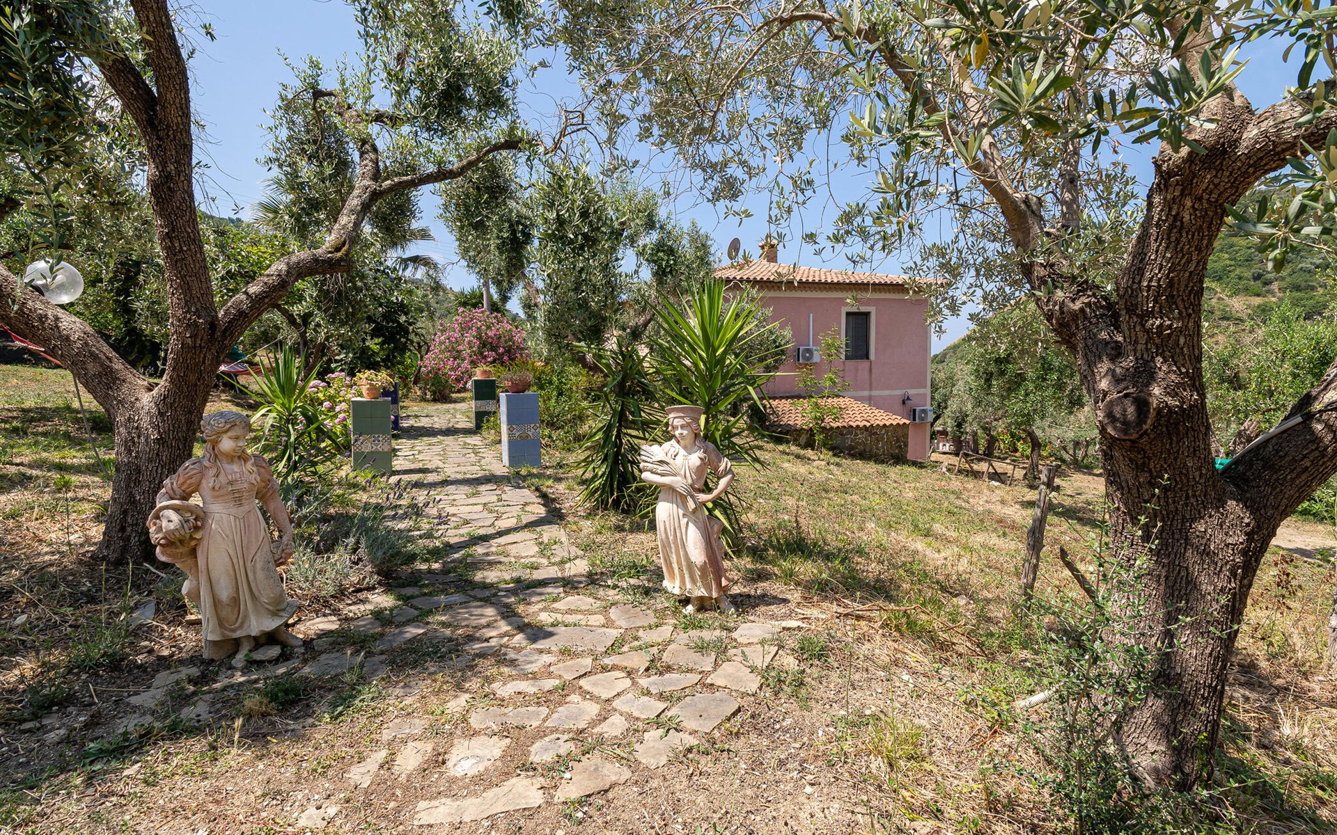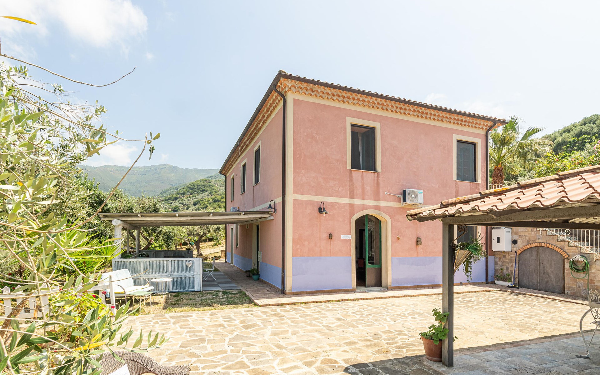 Dit prachtige vakantiehuis, gebouwd tegen het einde van de 19e eeuw, ligt tussen kliffen, zandstranden en mediterrane struikgewas in de prachtige regio Cilento, bekend om zijn zonnige klimaat, tradities en uitstekende keuken. Het huis ligt afgelegen op het platteland in het midden van een 2 ha grote olijfgaard, waar een uitstekende olijfolie van eerste persing wordt geproduceerd, ongeveer 2 km van het dichtstbijzijnde dorp Agnone. In het sfeervol ingerichte huis vindt u bouwelementen zoals hout, cotto en tegels uit Vietri sul Mare, er zijn vier slaapkamers met badkamer, een eetkamer en een kleine keuken. In de buitenruimtes vindt u een grote, ingerichte tuin en, iets aan de zijkant, een klein zwembad waar u volledig ongestoord kunt ontspannen. Een deel van het vakantiehuis kijkt uit over de olijfgaard, een ander deel over de kristalheldere zee van Agnone, een klein kustplaatsje dat vakantiegangers uit alle landen betovert met zijn prachtige kustlijn. Op 6 km afstand ligt de karakteristieke vissers- en badplaats Acciaroli, waar ook Ernest Hemingway graag lange tijd verbleef. Voor degenen die de voorkeur geven aan de bergen, raden wij een bezoek aan San Mauro Cilento aan, beroemd om zijn extra vergine olijfolie, vanwaar een wandelroute de bergen in gaat en langs schaduwrijke paden door dichte kastanjebossen naar uitzichtpunten leidt waar u kunt genieten van adembenemende panorama's zoals een uitzicht op de prachtige Capo Palinuro. Er zijn picknickplaatsen langs de paden en aan het einde van de wandelroute bereikt u het bedevaartsoord van de Madonna della Stella. De toegang tot het huis is via een grindweg, niet geschikt voor sportwagens of lage auto's. Vanaf half juni voor het zomerseizoen is een systeem van verbindingen met de meest interessante toeristische gebieden zoals de Amalfikust, Capri, Napels, Salerno actief. Goed uitgangspunt om ook de archeologische gebieden zoals Paestum, Velia en de Certosa di Padula te ontdekken. Mogelijkheid om rondleidingen in het Engels aan te vragen (tegen betaling ter plaatse, niet in augustus).