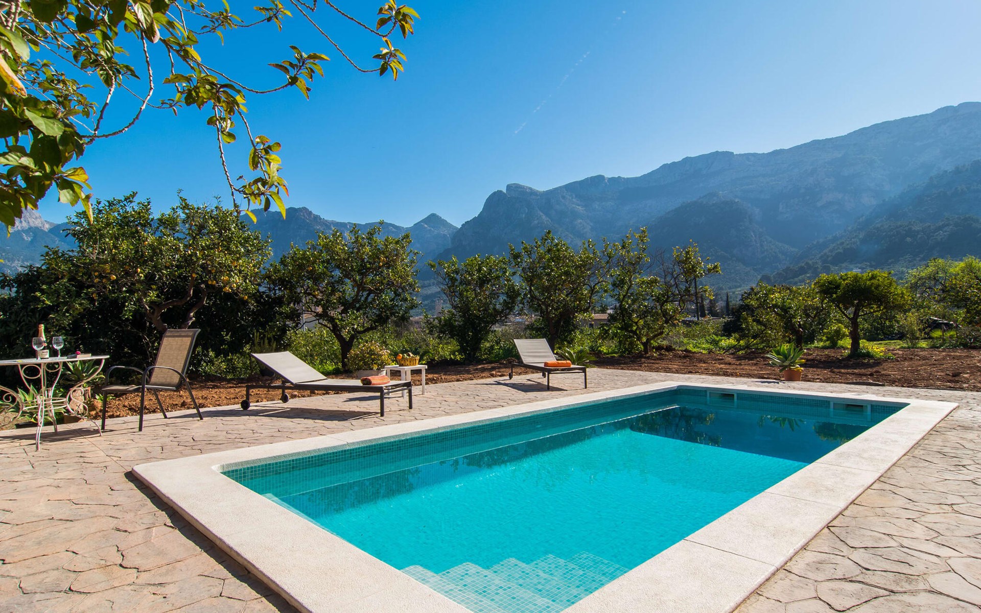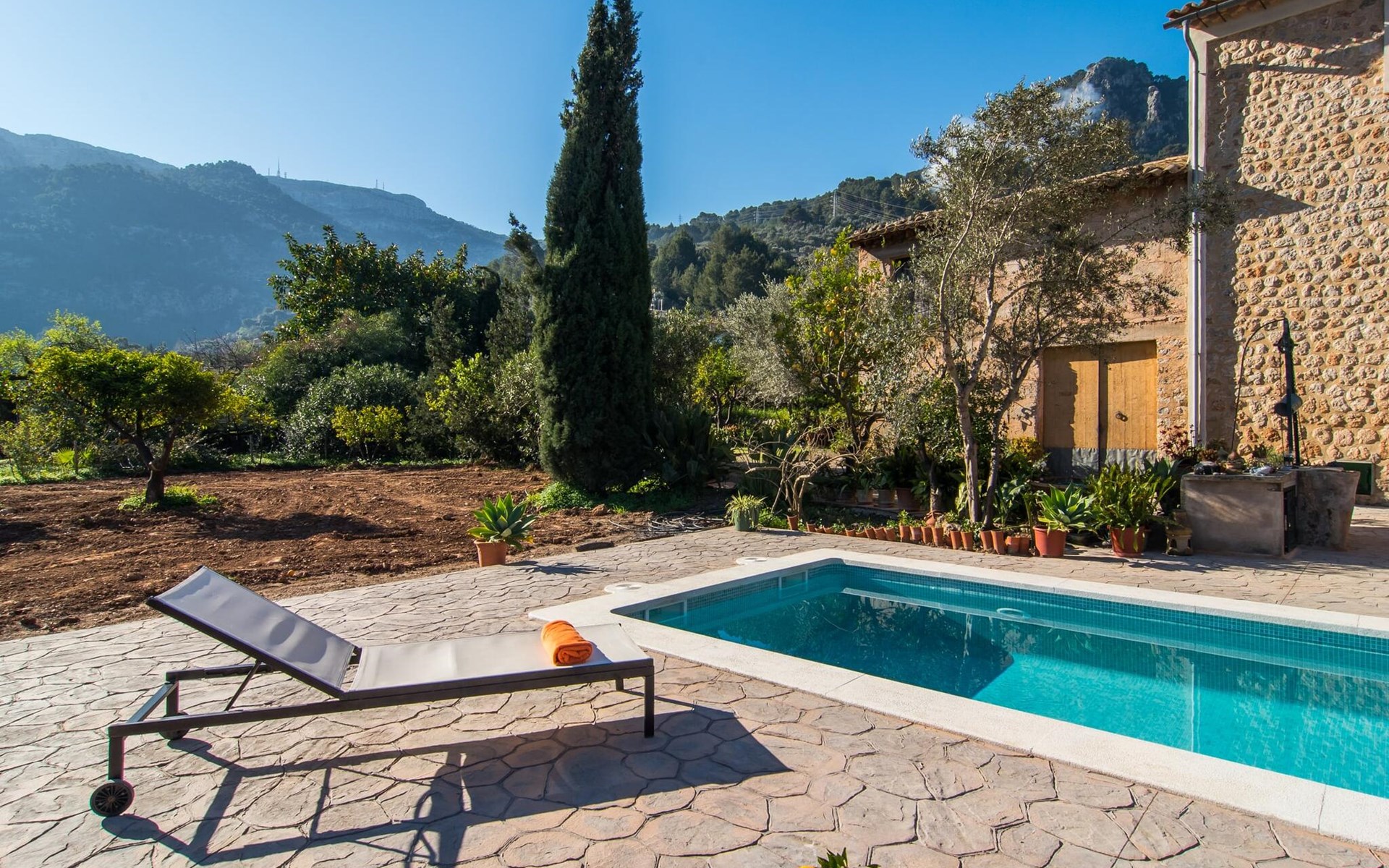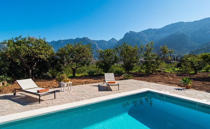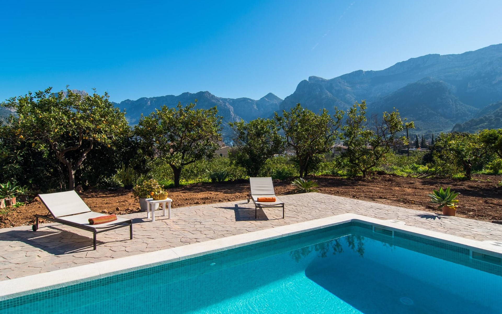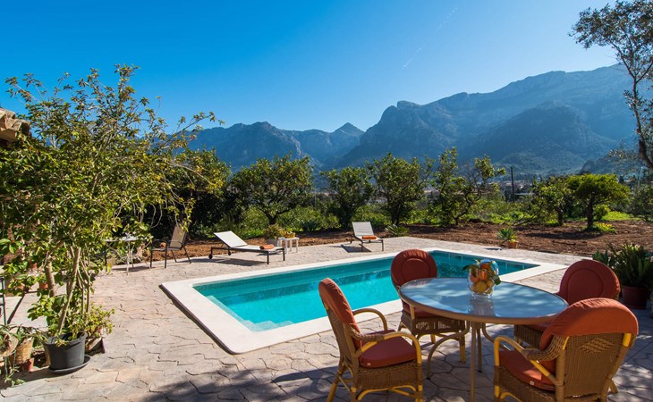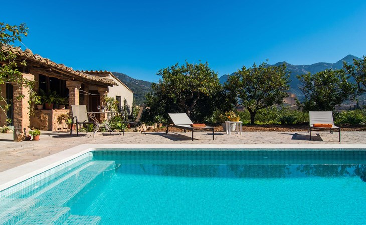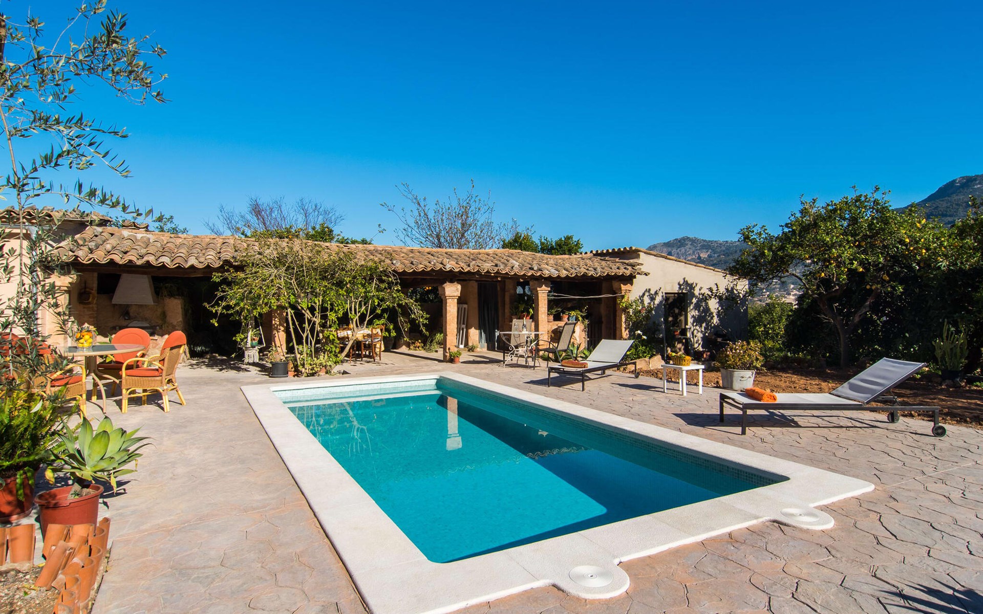Dit fantastische huis is romantisch omringd door citroen- en sinaasappelboomgaarden in de vruchtbare, gouden vallei van Mallorca te midden van een fascinerend berglandschap. Een landgoed van 5.000 m² met een romantische tuin vol mediterrane plantenpracht verwelkomt je met een verscheidenheid aan inheemse bloemen, palmbomen en fruitbomen. Het adembenemende uitzicht op de sublieme bergwereld laat het alledaagse leven achter je. Geniet van je ontbijt buiten aan de houten eettafel op het ruime, overdekte terras voordat je op weg gaat naar de activiteiten van de dag. De houtskoolbarbecue is perfect om 's avonds heerlijke barbecuespecialiteiten op tafel te toveren. Op het zonneterras staan comfortabele ligstoelen klaar. Hier vind je nog een eettafel waar je kunt genieten van een café con leche terwijl je een goed boek leest waar je thuis geen tijd voor hebt gevonden. De woning heeft ook een buitentoilet. Omdat je huis geen directe buren heeft, kun je genieten van 100% privacy en nieuwe energie opdoen.