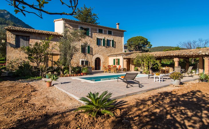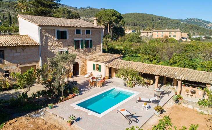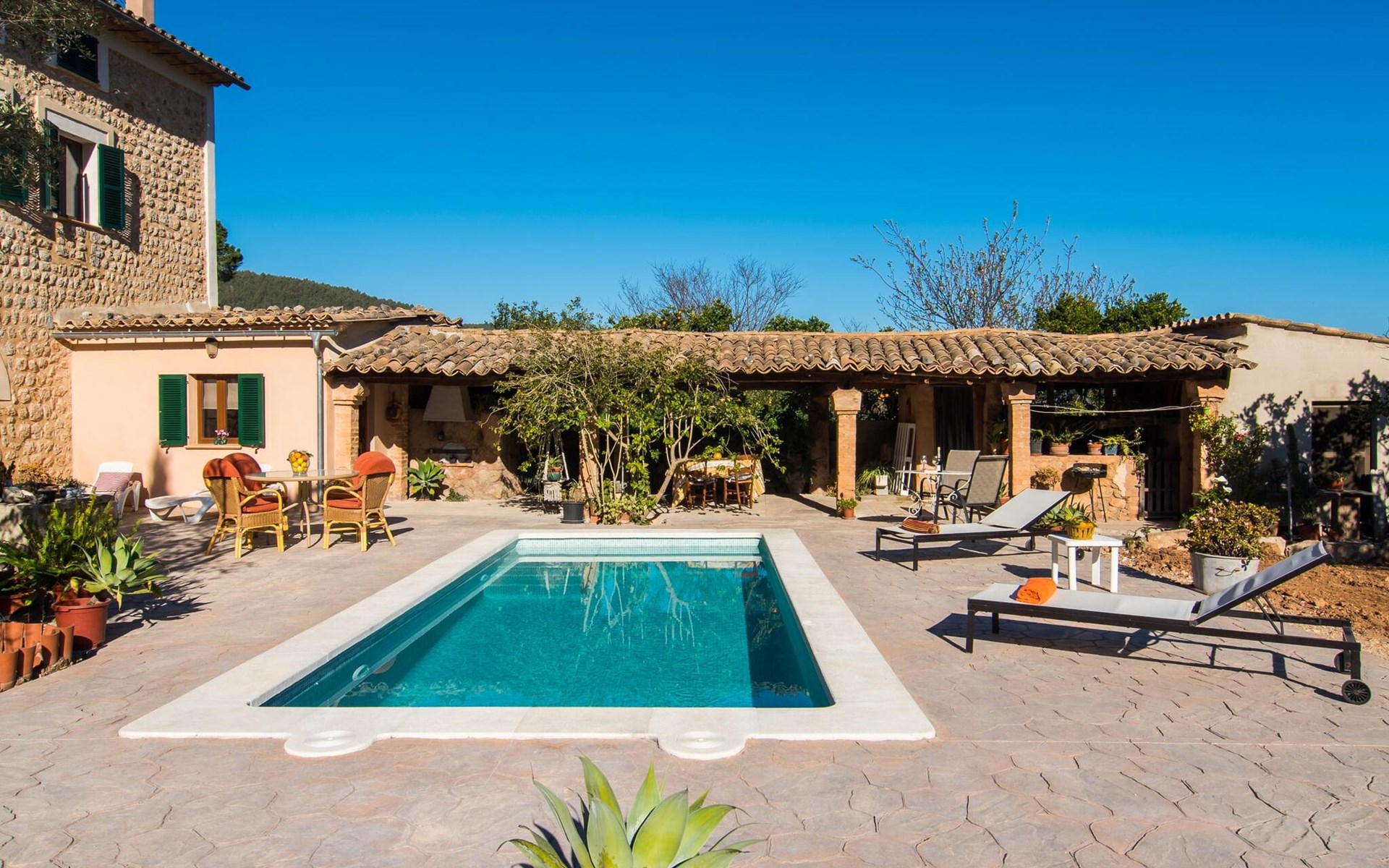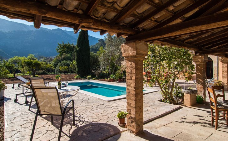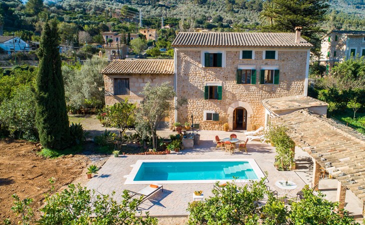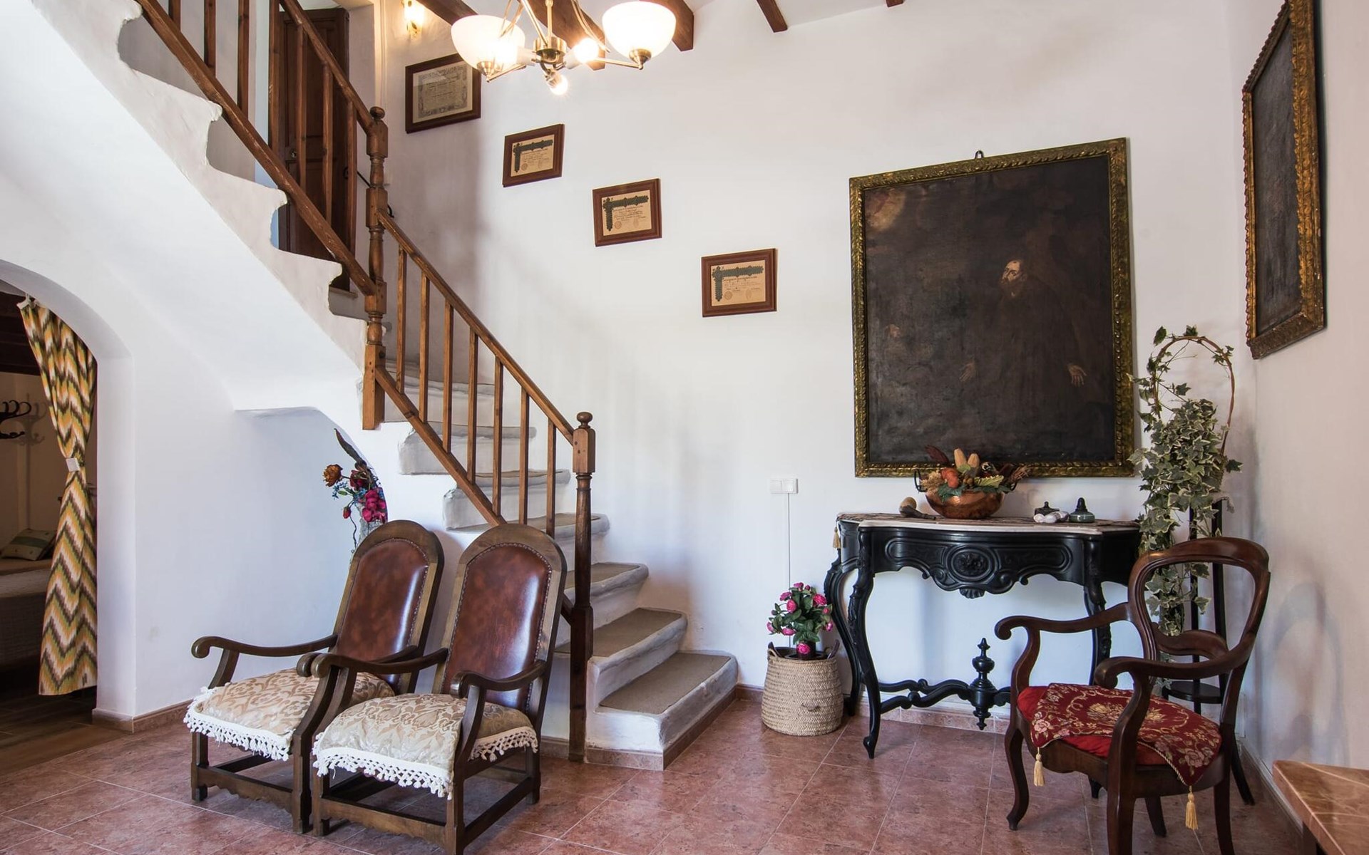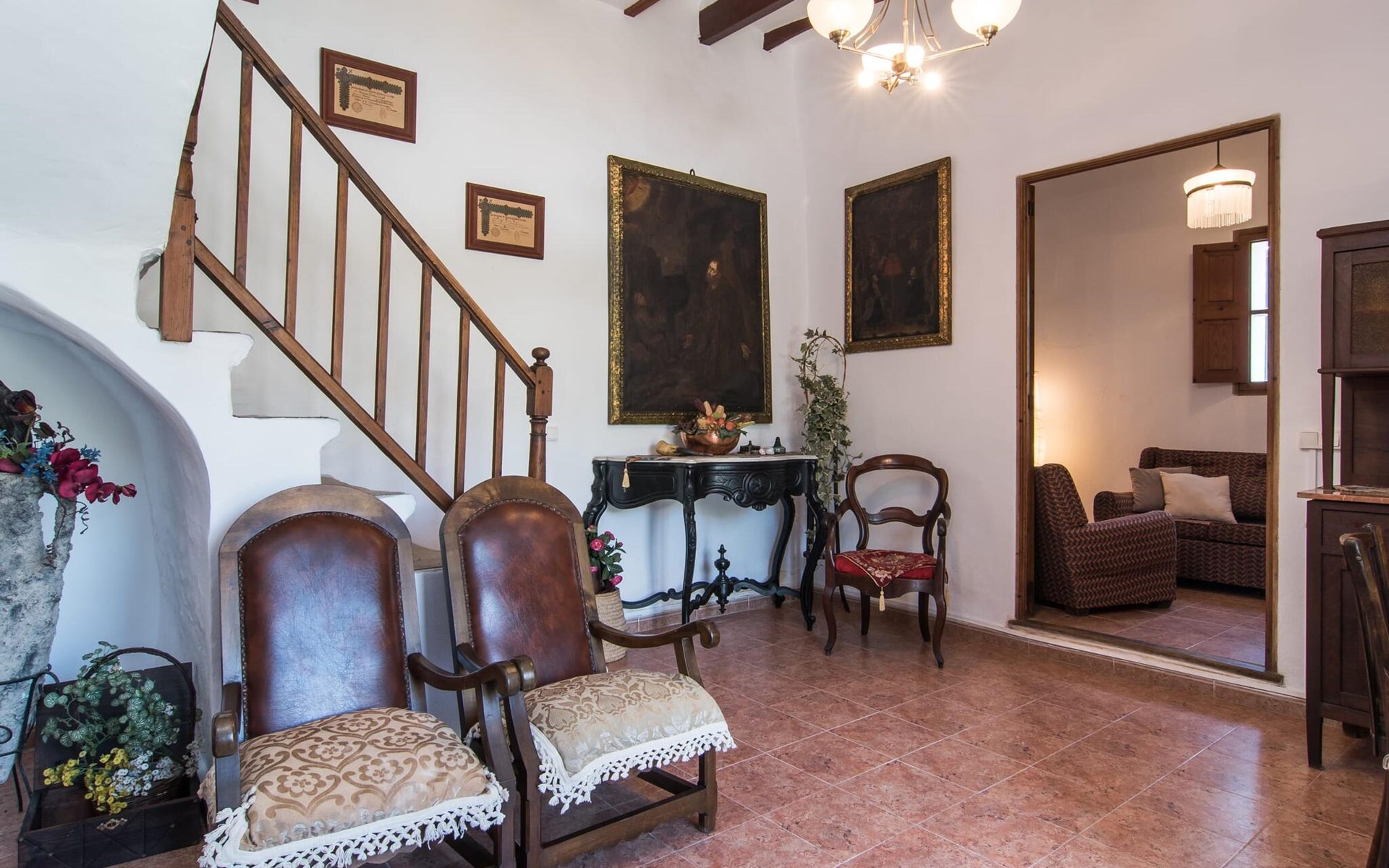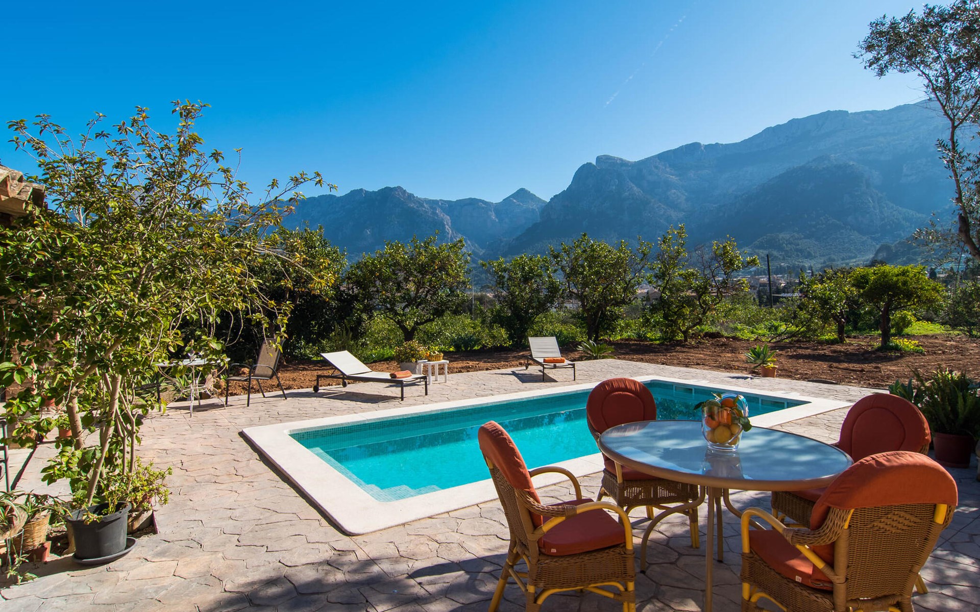 Dit fantastische huis is romantisch omringd door citroen- en sinaasappelboomgaarden in de vruchtbare, gouden vallei van Mallorca te midden van een fascinerend berglandschap. Een landgoed van 5.000 m² met een romantische tuin vol mediterrane plantenpracht verwelkomt je met een verscheidenheid aan inheemse bloemen, palmbomen en fruitbomen. Het adembenemende uitzicht op de sublieme bergwereld laat het alledaagse leven achter je. Geniet van je ontbijt buiten aan de houten eettafel op het ruime, overdekte terras voordat je op weg gaat naar de activiteiten van de dag. De houtskoolbarbecue is perfect om 's avonds heerlijke barbecuespecialiteiten op tafel te toveren. Op het zonneterras staan comfortabele ligstoelen klaar. Hier vind je nog een eettafel waar je kunt genieten van een café con leche terwijl je een goed boek leest waar je thuis geen tijd voor hebt gevonden. De woning heeft ook een buitentoilet. Omdat je huis geen directe buren heeft, kun je genieten van 100% privacy en nieuwe energie opdoen.