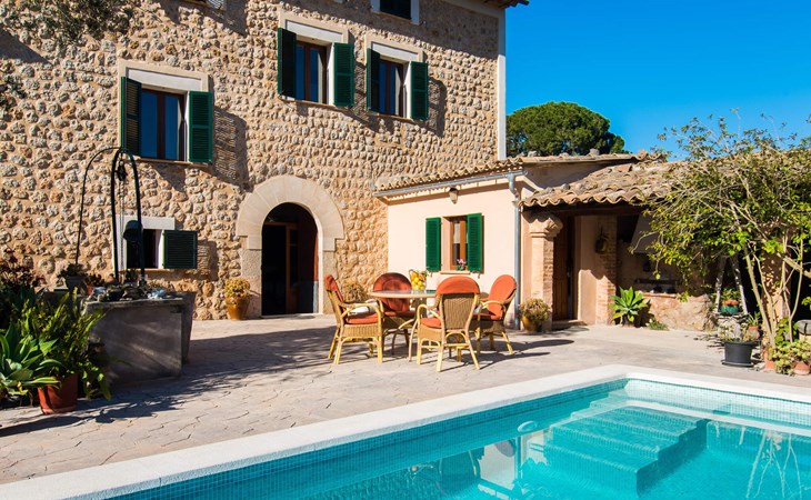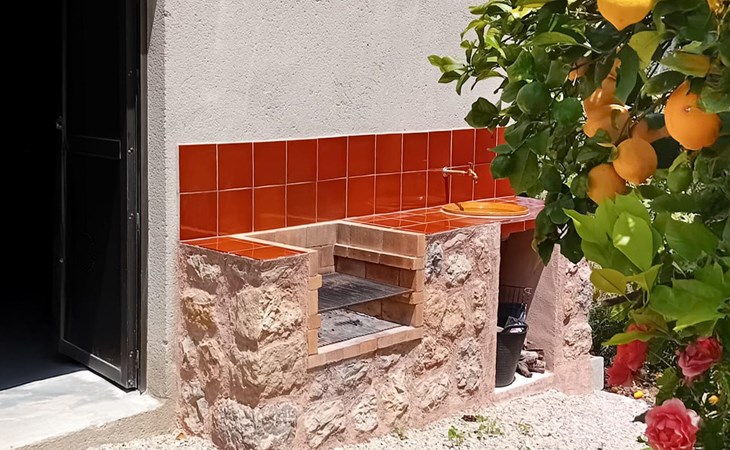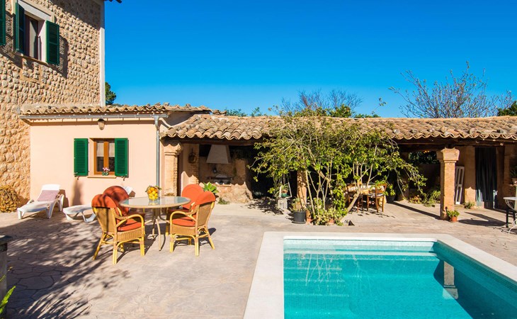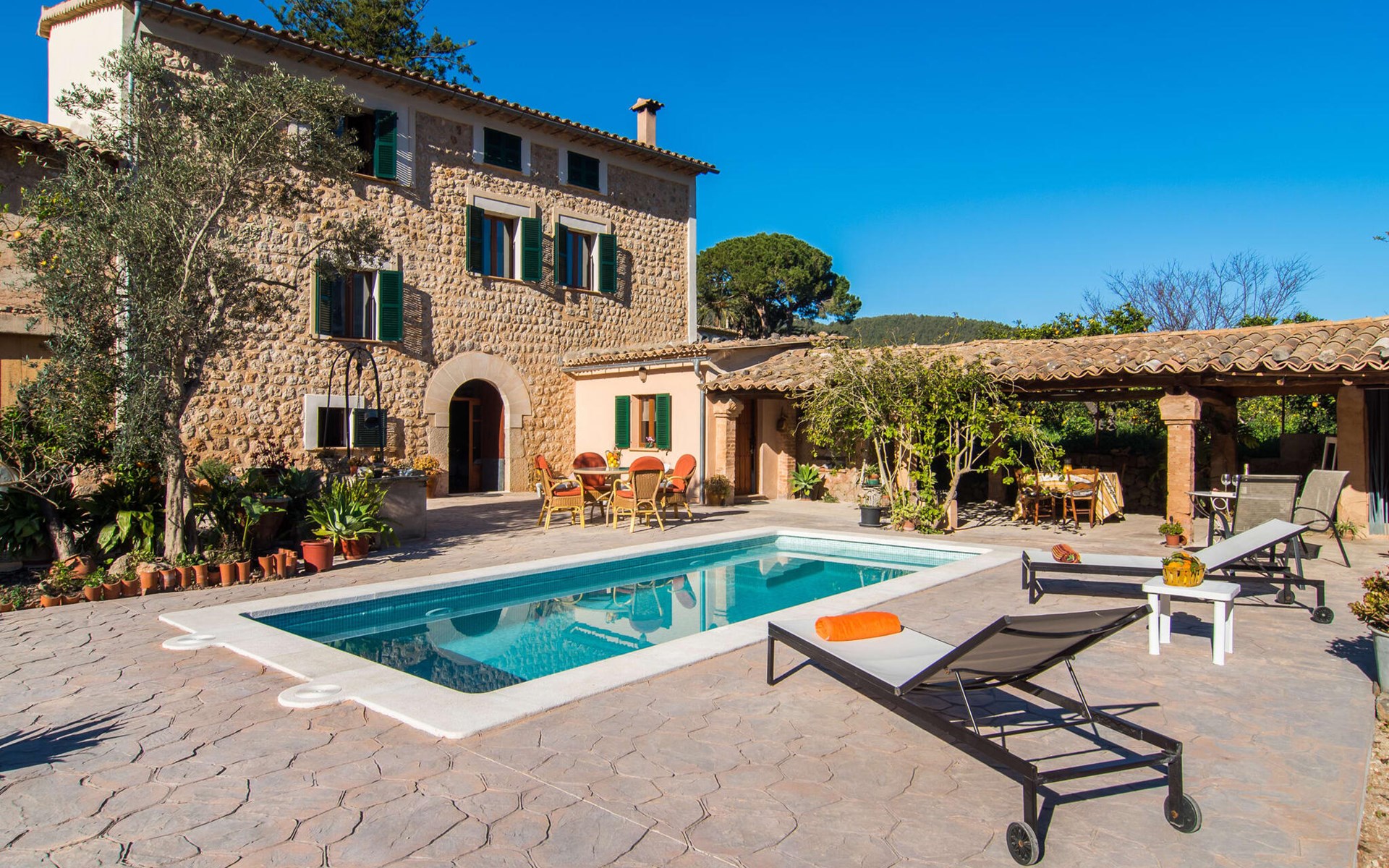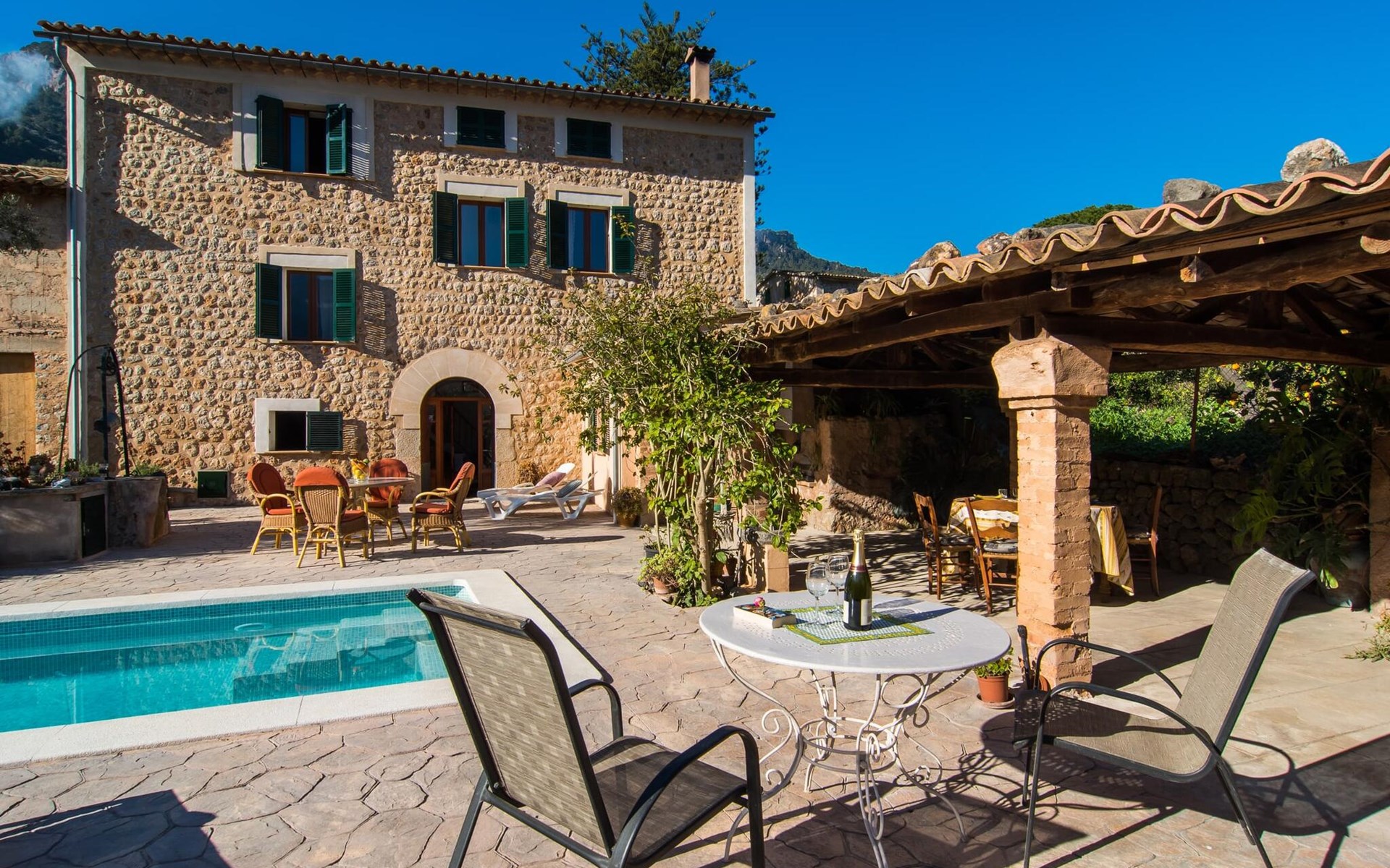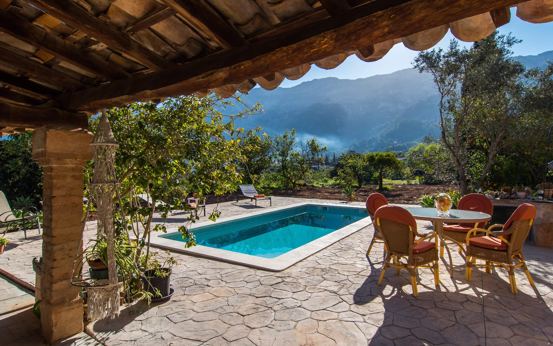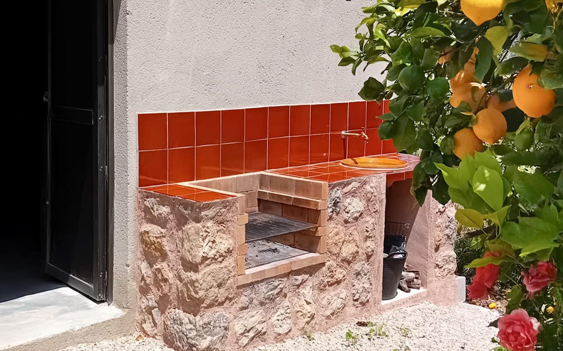 Dit fantastische huis is romantisch omringd door citroen- en sinaasappelboomgaarden in de vruchtbare, gouden vallei van Mallorca te midden van een fascinerend berglandschap. Een landgoed van 5.000 m² met een romantische tuin vol mediterrane plantenpracht verwelkomt je met een verscheidenheid aan inheemse bloemen, palmbomen en fruitbomen. Het adembenemende uitzicht op de sublieme bergwereld laat het alledaagse leven achter je. Geniet van je ontbijt buiten aan de houten eettafel op het ruime, overdekte terras voordat je op weg gaat naar de activiteiten van de dag. De houtskoolbarbecue is perfect om 's avonds heerlijke barbecuespecialiteiten op tafel te toveren. Op het zonneterras staan comfortabele ligstoelen klaar. Hier vind je nog een eettafel waar je kunt genieten van een café con leche terwijl je een goed boek leest waar je thuis geen tijd voor hebt gevonden. De woning heeft ook een buitentoilet. Omdat je huis geen directe buren heeft, kun je genieten van 100% privacy en nieuwe energie opdoen.