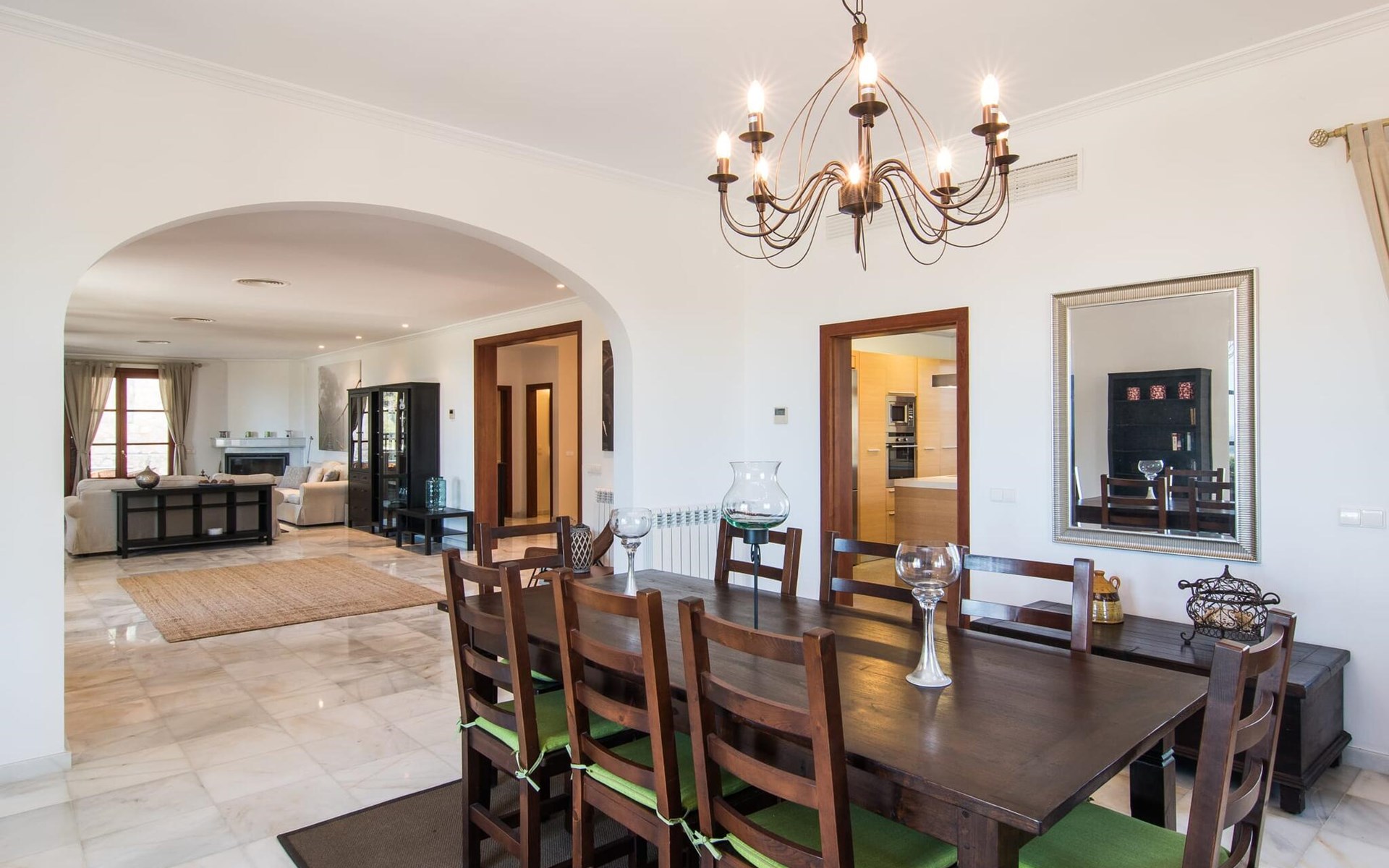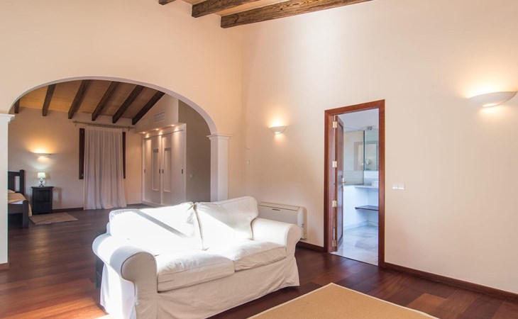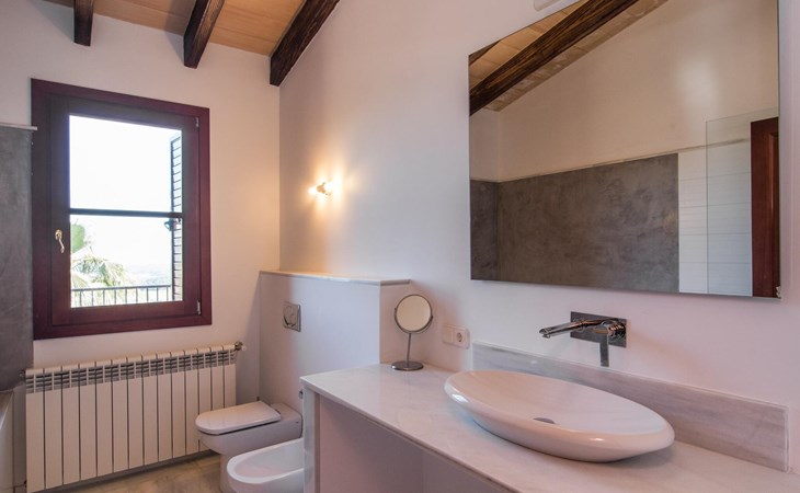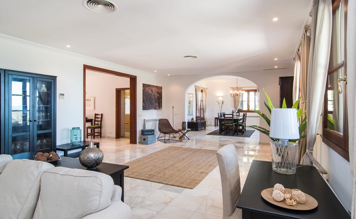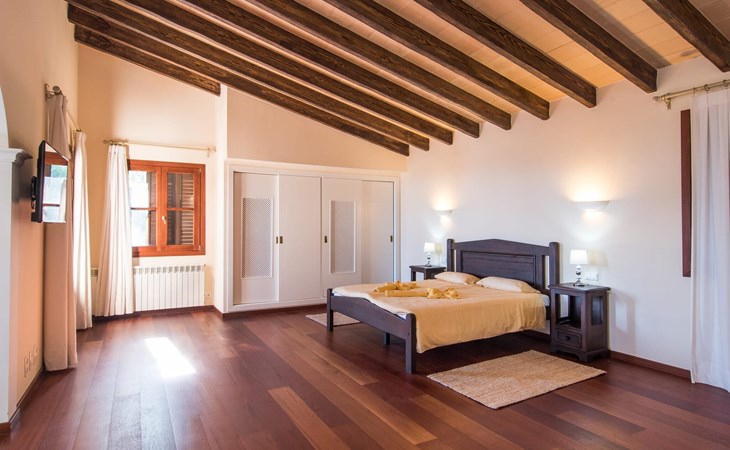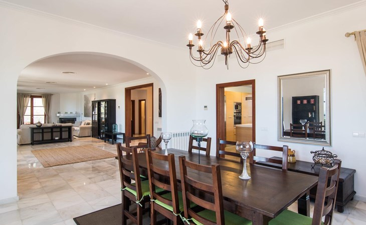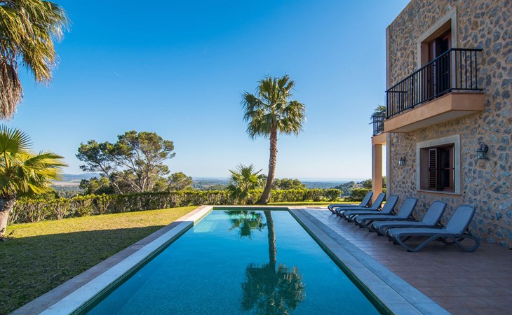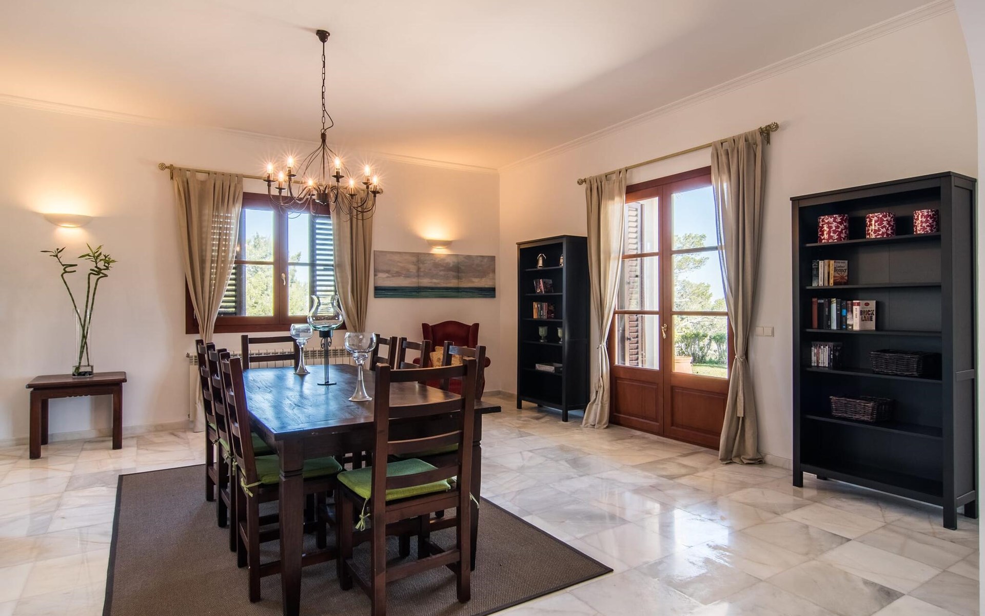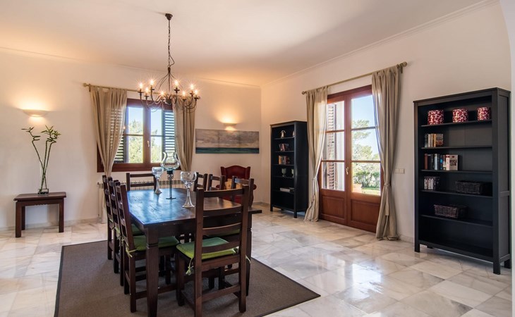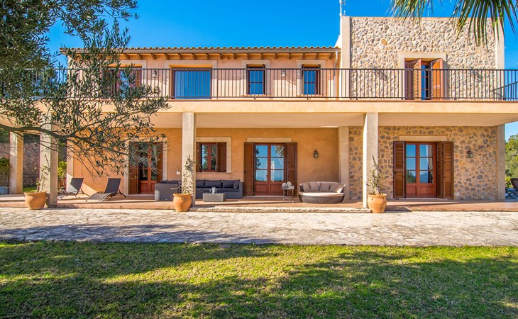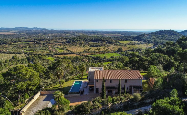 De blootgestelde, afgelegen locatie van de villa garandeert 100% privacy en onvergetelijke momenten in een zeer idyllische regio van Mallorca. Het gebouw in klassieke stijl ligt majestueus op een heuvel, omringd door een maquis van lavendel en bremstruiken, wilde olijfbomen, dennen en Aleppo dennen, rozemarijn en rotsrozen. Het milde mediterrane klimaat met zijn vele dagen zon heeft een landschap gecreëerd dat ongeëvenaard is in zijn schoonheid en gratie. Stedelijke flair kun je ervaren in de op een na grootste stad van Mallorca, Manacor: Bekend om zijn parelindustrie en met zijn historische adellijke huizen, heeft de stad nu zijn nogal industriële imago van zich afgeschud en verrast het bezoekers met smalle steegjes, mooie cafés, restaurants en boetiekjes. Vooral de wekelijkse markt ademt de typische Mallorcaanse levensstijl. De mooiste baaien en stranden aan de oostkust, zoals het adembenemende Cala Romantica, zijn niet ver weg met de auto. Daarnaast biedt de regio talloze wandelpaden, watersportmogelijkheden en talloze attracties - vrijwel alles wat je je maar kunt wensen voor een gevarieerde, uiterst ontspannen vakantie. De prachtige natuurstenen villa Dues ligt op een verhoogde positie in het mediterrane landschap ten zuiden van de stad Manacor. De open, afgelegen locatie garandeert 100% privacy en een weids, onbelemmerd uitzicht op de uitgestrekte, vruchtbare vlakte van Llevant. Er zijn geen directe buren: hier kun je genieten van luxe understatement buiten de gebaande toeristische paden. Je bent in een mum van tijd in de parelstad Manacor, waar je je dagelijkse boodschappen kunt doen of een van de vele restaurants kunt bezoeken.